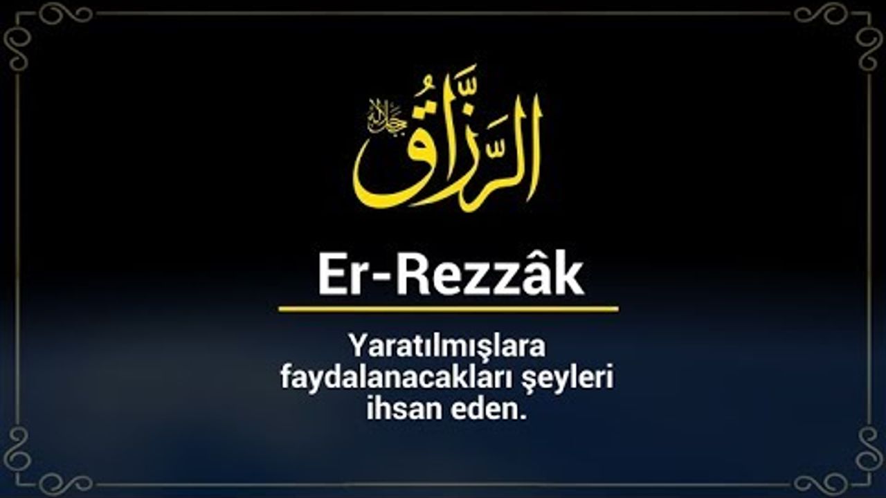 “Bütün mahlûkatın rızkını veren ve ihtiyacını karşılayan” anlamlarına gelen “er-Rezzâk” ism-i şerifi, hem maddî hem de manevî rızkı ulaştıran manasındadır. Aynî mallar, nakit paralar ve gıda sınıfına giren şeyler, maddî rızık kapsamına girmektedir. Manevî rızık ise ruhun gıdalarıdır. Kur’ân-ı Kerîm, manevî rızıkların kaynağıdır.