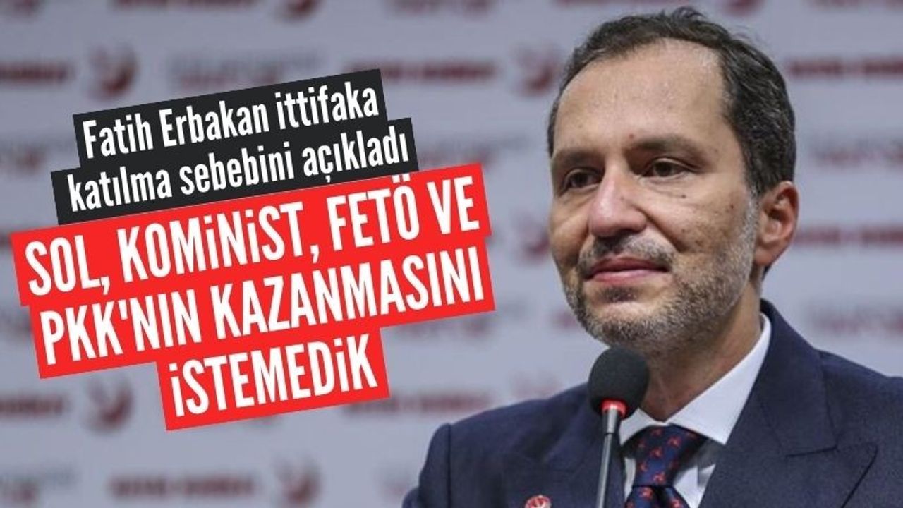 Erbakan, Cumhur İttifakı'na katılma kararıyla ilgili, "Sayın Cumhurbaşkanı ile prensipler konusunda uzlaştık. Böyle bir adım attık. Ülkemizin 60-70 yıl yeniden CHP zihniyetine teslim edilmesine vesile oldunuz’ suçlamasıyla muhatap olmak istemedik. Çünkü bizim bu mutabakatı sağlamayıp, adaylığa devam etmemiz durumunda böyle bir ihtimal olması söz konusuydu. Karşı blokta tüm sol, komünist, sosyalist, ataist fraksiyonların bir araya geldiklerini görmemiz. FETÖ unsurlarının tamamen karşı bloğa destek olduğunu görmemiz. Hatta PKK mensuplarının açıkça yaptıkları açıklamalarla mevcut iktidarın devrilmesi ve karşı bloğun iktidara gelmesi için destek olduklarını görmemiz, bu bloğun kazanmasına vesile olmak istemedik." dedi.