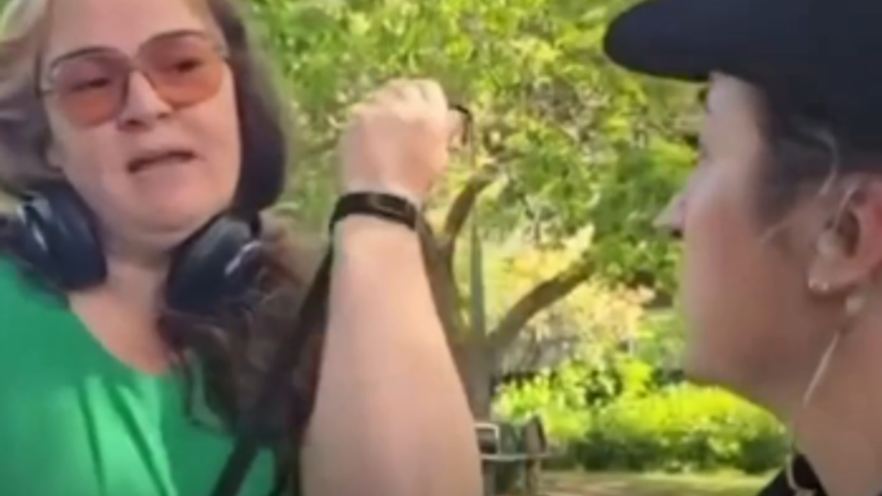 Filistin’e destek vermek amacıyla mahalle arasındaki bir parkta toplanan göstericiler, kendilerini izleyen polislerle sözlü tartışmaya girdi.