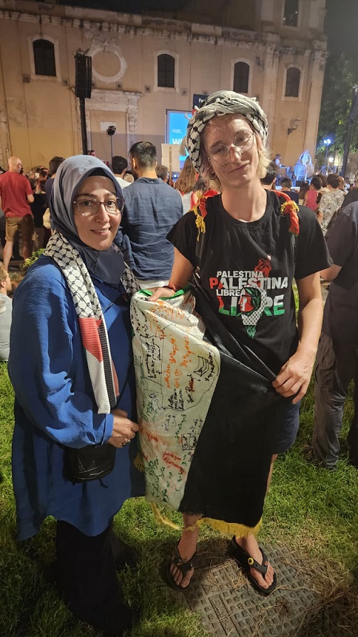 Müslümanlar olarak farklı paylaşımlarımız da oldu. Namazlarımızı cemaatle kıldık. Türk arkadaşımızın okuduğu ezanı herkes ilgiyle dinledi. Öyle ki ezandan ve namazdan etkilenip bize İslam'la ilgili sorular soran, hatta namaz kılmayı deneyen aktivistler de oldu. Biz Müslümanlar bu kardeşlik ortamına çok aşinayız aslında, dünyanın bir başka köşesinde karşılaştığımız Müslüman kardeşlerimizle sarılıp kucaklaşabiliyoruz rahatlıkla. Burada da güzel bir kardeşlik ortamını ki biz onu Gazze kardeşliği olarak adlandırıyoruz artık. Bu kardeşliği yaşadık ve hala yaşamaya devam ediyoruz.