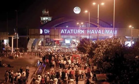 Onbinlerce vatandaş FETÖ'nün darbe girişimine tepki göstermek için İstanbul Atatürk Havalimanı'na geldi.