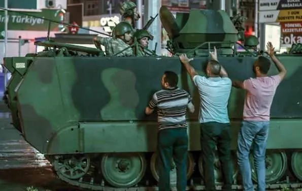 Ankara Kızılay Meydanı'nda darbe girşimini protesto etmek için toplanan vatandaşlar, Kızılay'dan geçiş yapan tankların ilerleyişini elleriyle durdurmaya çalıştı.