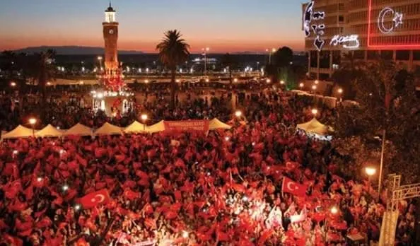 İzmir'de Konak Meydanı'nda toplanan İzmirli vatandaşların Fetullahçı Terör Örgütü'nün (FETÖ) darbe girişimini protestosu...