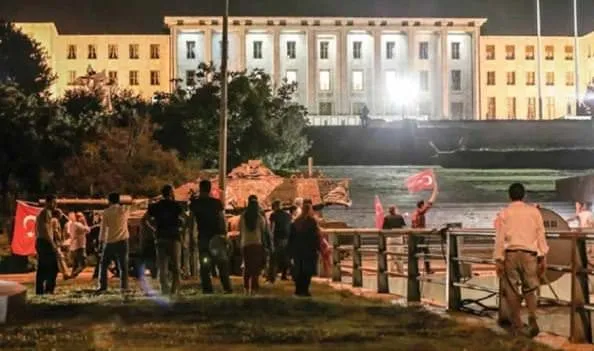 Ankara Kızılay istikametinden gelip Genelkurmay Başkanlığı önüne doğru giden tanklar TBMM önünde, ellerindeki bayraklarla demokrasiye sahip çıkan halkın direnişi ile karşılaştı.