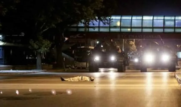 Ankara'da bir vatandaş kentin caddelerine giren zırhlı araçların önüne yatarak canı pahasına darbe girişimine karşı koydu.