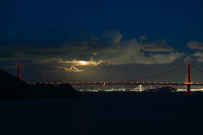 ABD'nin Kaliforniya eyaletine bağlı Sausalito kentinde, "Süper Solucan Ay" olarak da bilinen dolunay Golden Gate Köprüsü üzerinde görüntülendi.