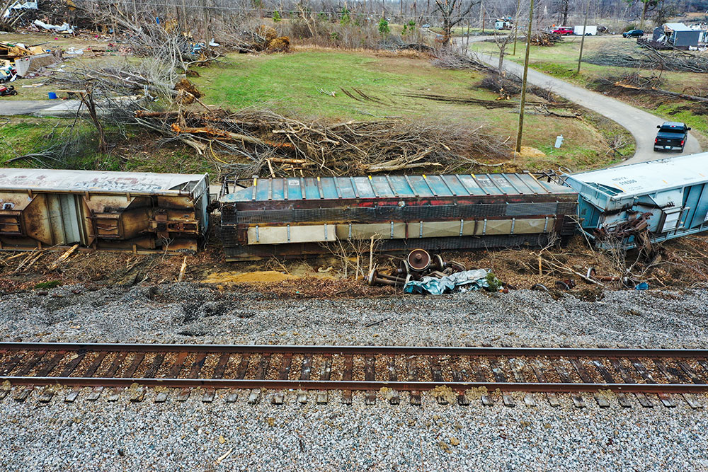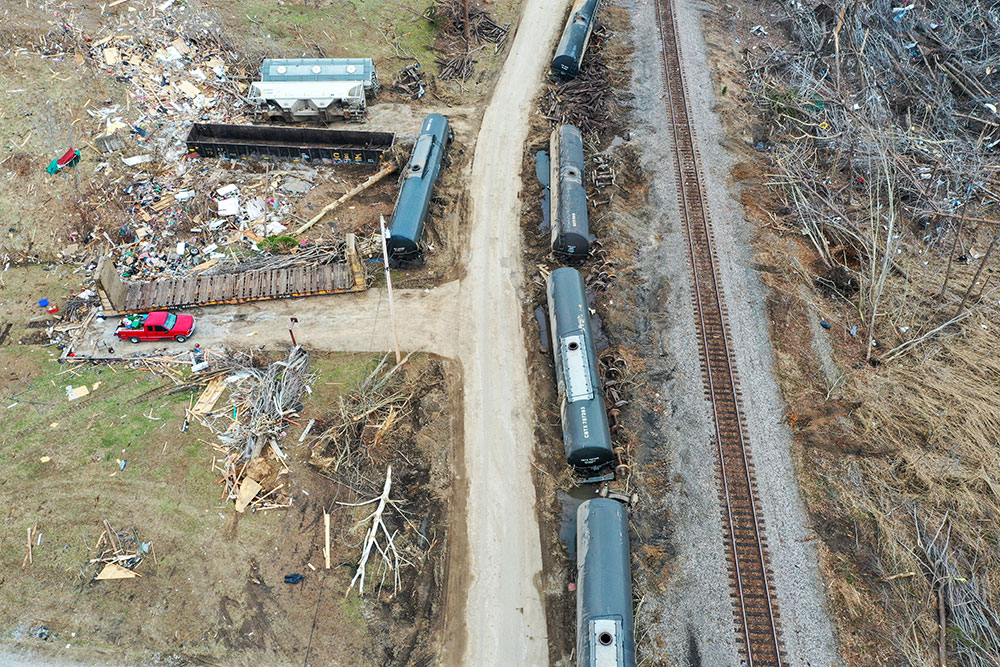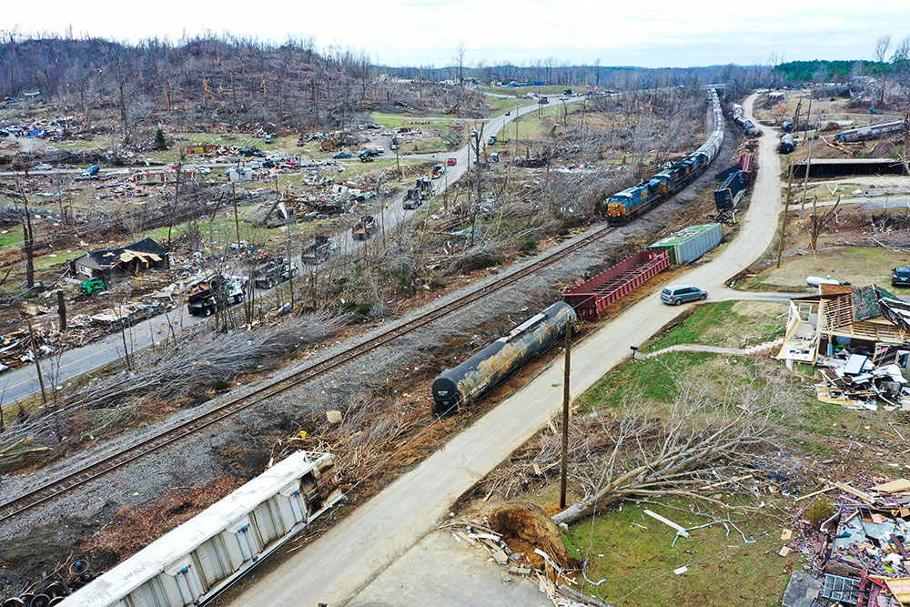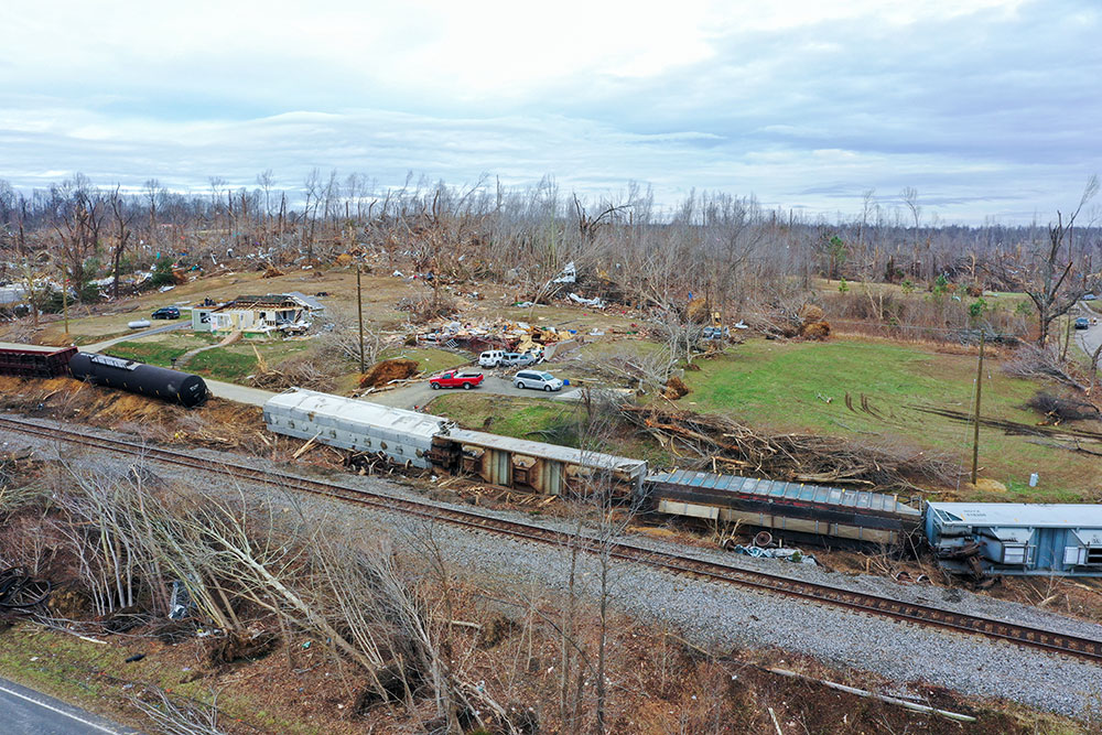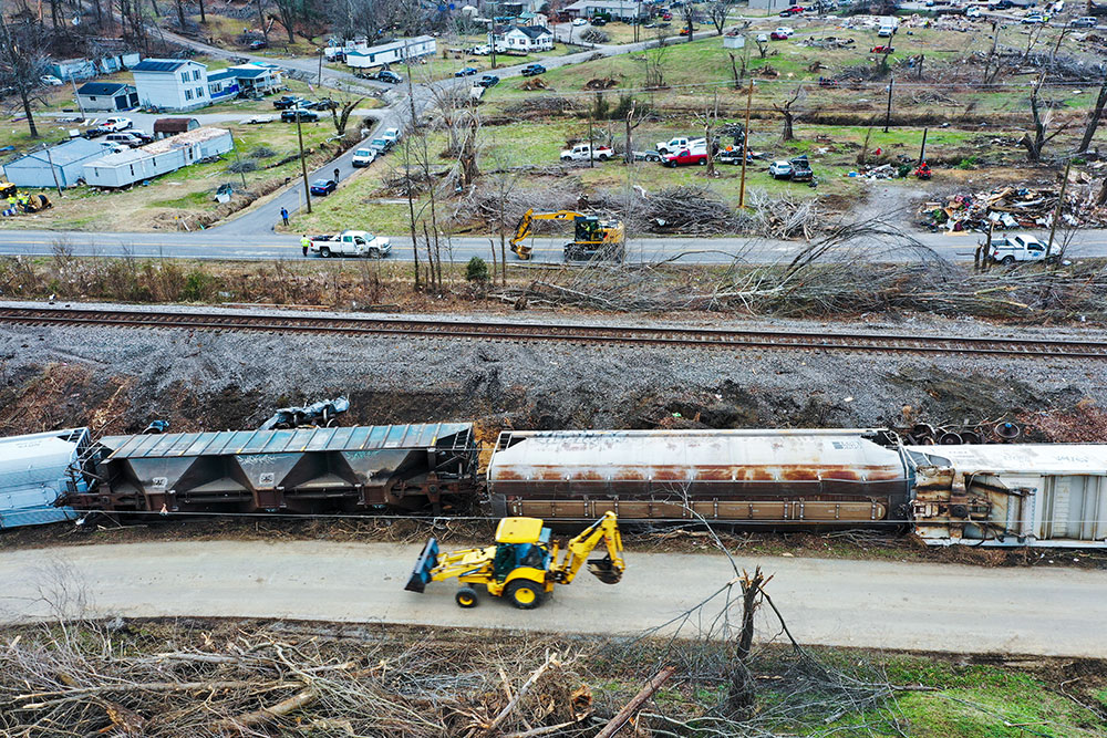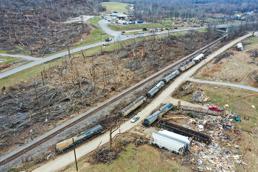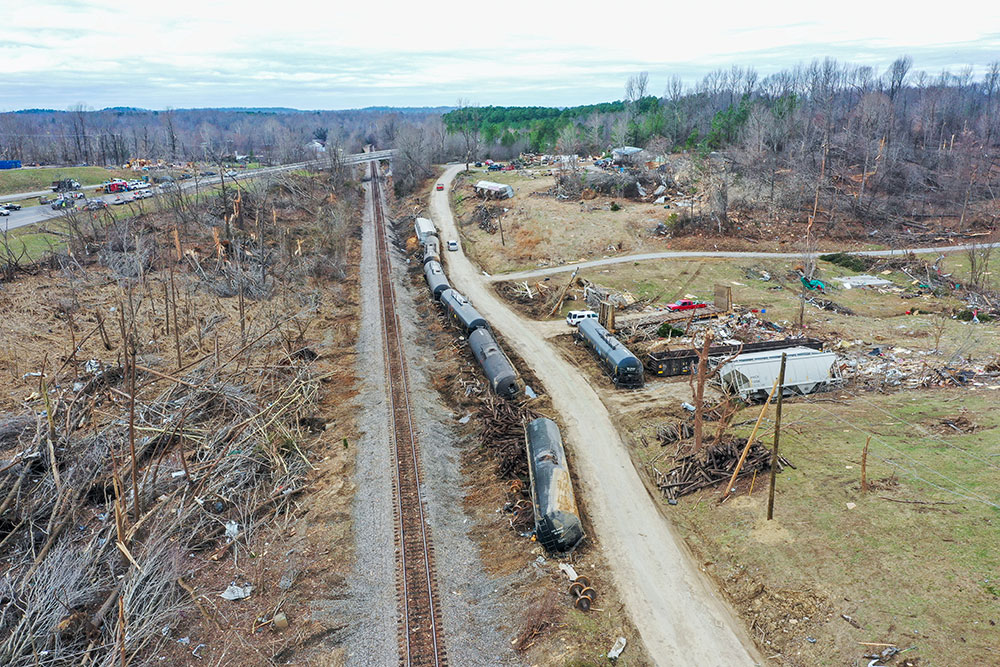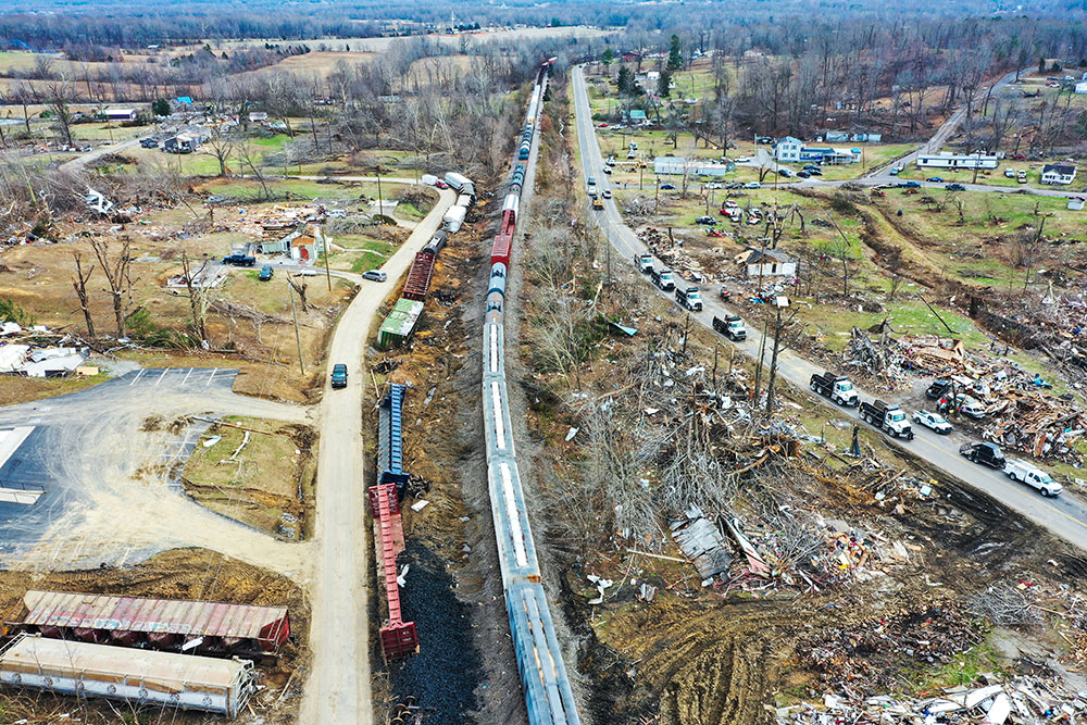 ABD'de hortumlar nedeniyle yerle bir olan Kentucky eyaletindeki Earlington kentinde çok sayıda ev zarar gördü. Evi yıkılan Bonnie Moxley enkaz arasında kullanılabilir durumdaki eşyalarını topladı.