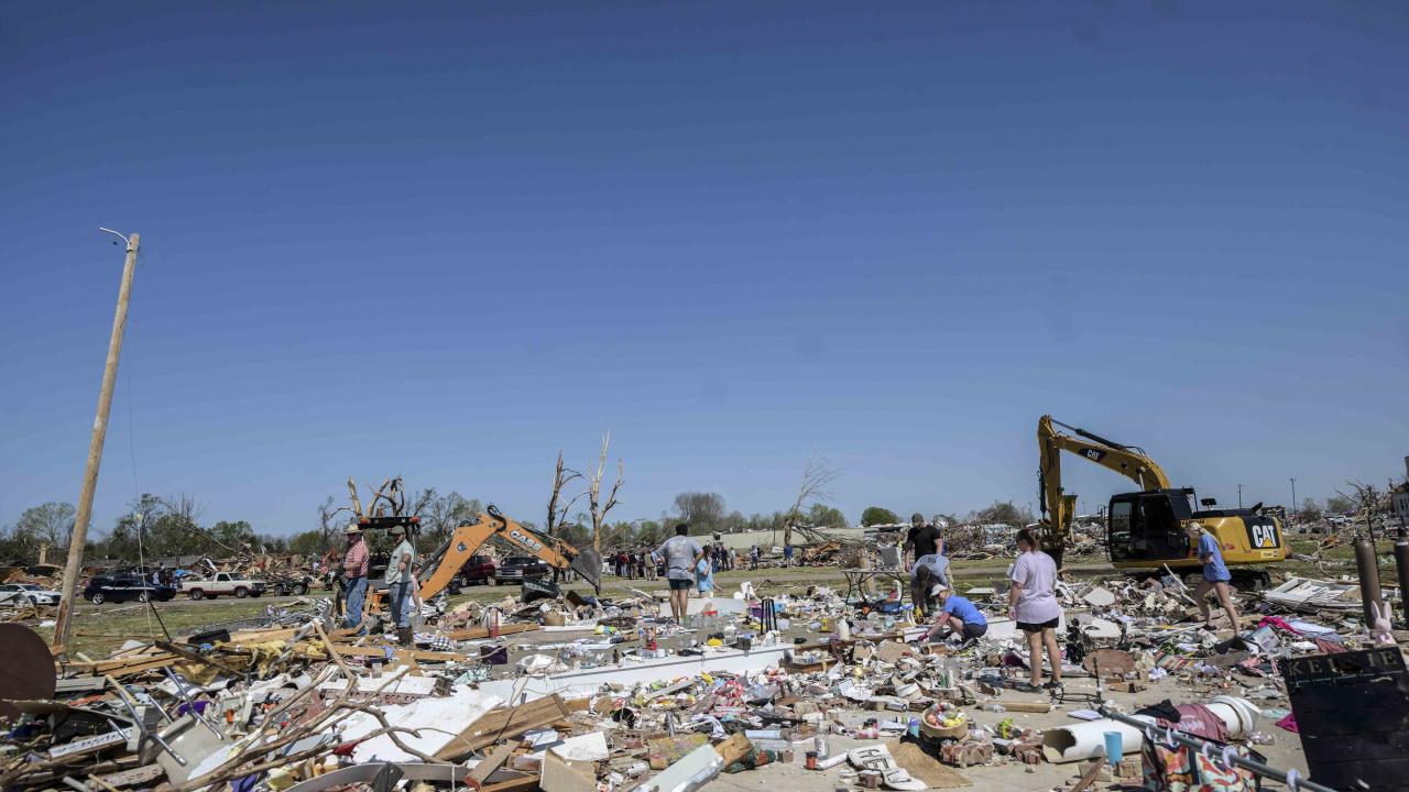 Rolling Fork kasabasının genellikle düşük gelirlilerden oluşan halkının, son 50 yılın en büyük hortumu olduğu belirtilen afet nedeniyle büyük zarar gören evlerini tekrar yaşanır hale getirmek için uğraştığı görüldü.