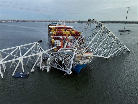Maryland eyaletine bağlı Baltimore kentinde bulunan Francis Scott Key Köprüsü'ne dün yerel saatle 01.30 civarında büyük bir kargo gemisi çarptı.