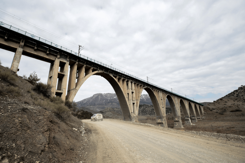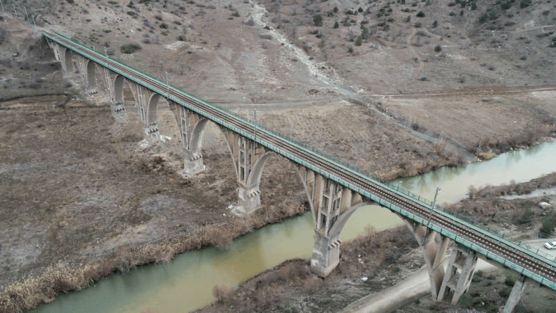 Malatya'nın Hekimhan ilçesindeki demir madenini Hatay'ın İskenderun ilçesine götürmek için kullanılan köprü, demir yolunda depremin verdiği hasardan dolayı kullanılamıyor.