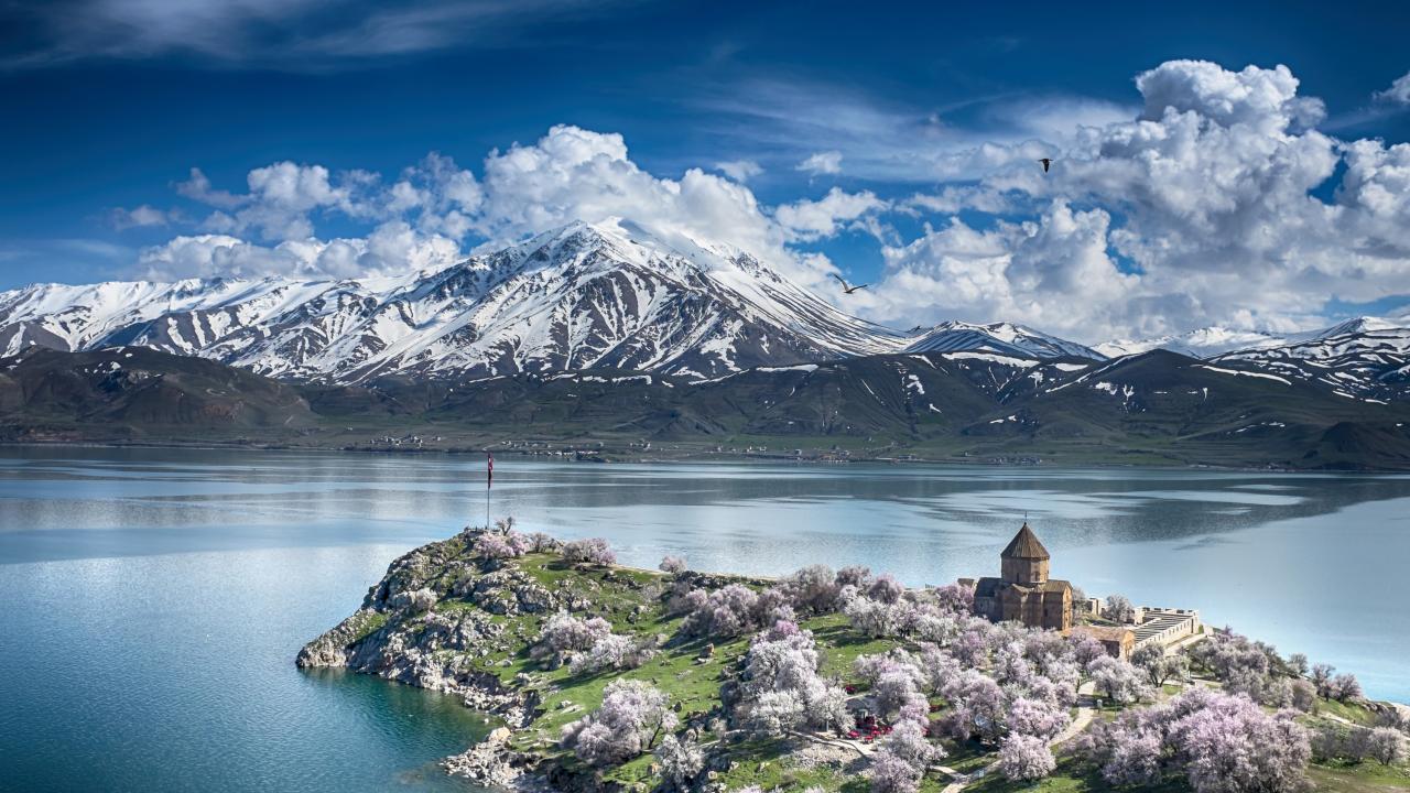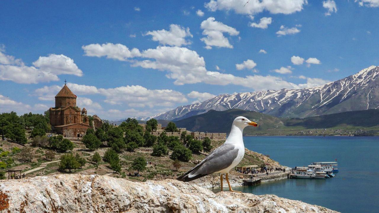 İlkbaharda gölün turkuaz rengi ve karla kaplı Artos Dağı manzarası ile Akdamar Adası fotoğrafçıların ilgi odağı oluyor.