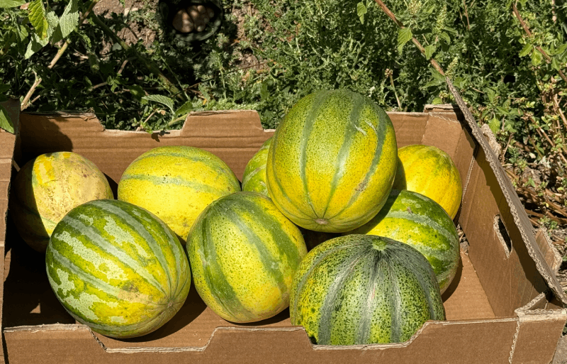 Ekiminin mart, nisan aylarında, hasadının da genellikle ağustosta yapıldığını ifade eden Çevik, "Bağrıbütün, Aydıncık adına coğrafi işaret belgeli bir ürünümüzdür. Sipariş üzerine Ankara, İstanbul, İzmir'e gönderiyorum. Yer muzu da denilen bir ürün, kavun ama tadı muza benziyor." dedi.