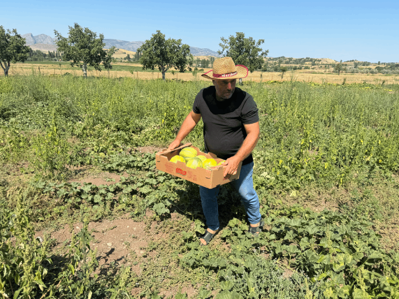 Tarlada kavun hasadı yapan çiftçilerden Kadir Çevik, gazetecilere, 5 dekar alanda ekim yaptığını, ürünleri sipariş üzerine sattığını söyledi.