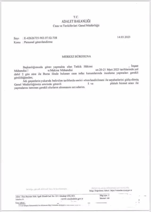 "Bu doğrultuda Ceza ve Tevkifevleri Genel Müdürlüğü tarafından Destek Hizmetleri Daire Başkanlığında görevli 1 makine mühendisi, Adalet Bakanlığı Destek Hizmetleri Daire Başkanlığında görevli inşaat ve elektrik mühendislerinden oluşan toplam 4 kişilik teknik ekip ile ekibin başkanlığını ve koordinesini yapmak üzere Ceza ve Tevkifevleri Genel Müdürlüğü Destek Hizmetleri Daire Başkanlığı İnşaat Emlak Büro Sorumlusu Tetkik Hakimi, 21 Mart 2023'te adı geçen kurumda inceleme yapmak üzere görev olurları alınmak suretiyle görevlendirilmişlerdir. Söz konusu olurlara istinaden adada teknik incelemeler yapılarak ihtiyaç duyulan tadilat ve güçlendirmelere ilişkin hazırlanan rapor Genel Müdürlüğe sunulmuştur.
