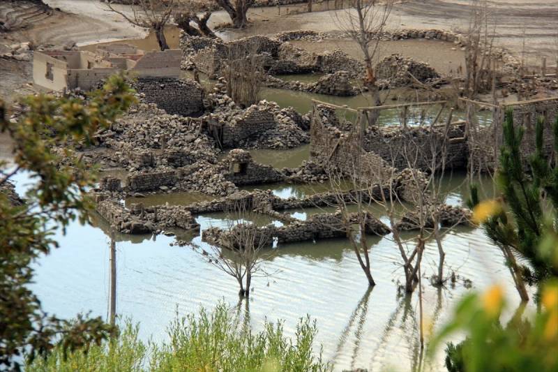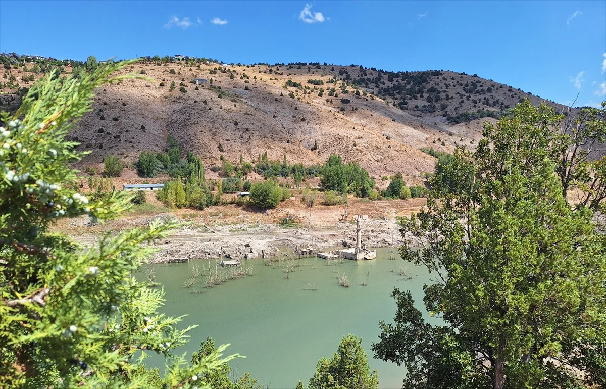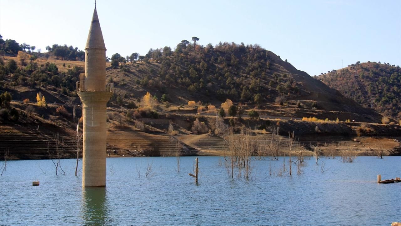Tamamen dolduğu zaman sadece minarenin uç kısmı görünen barajda, kuraklığın etkisiyle su seviyesi azalınca cami ve köyün büyük bölümü ortaya çıktı.