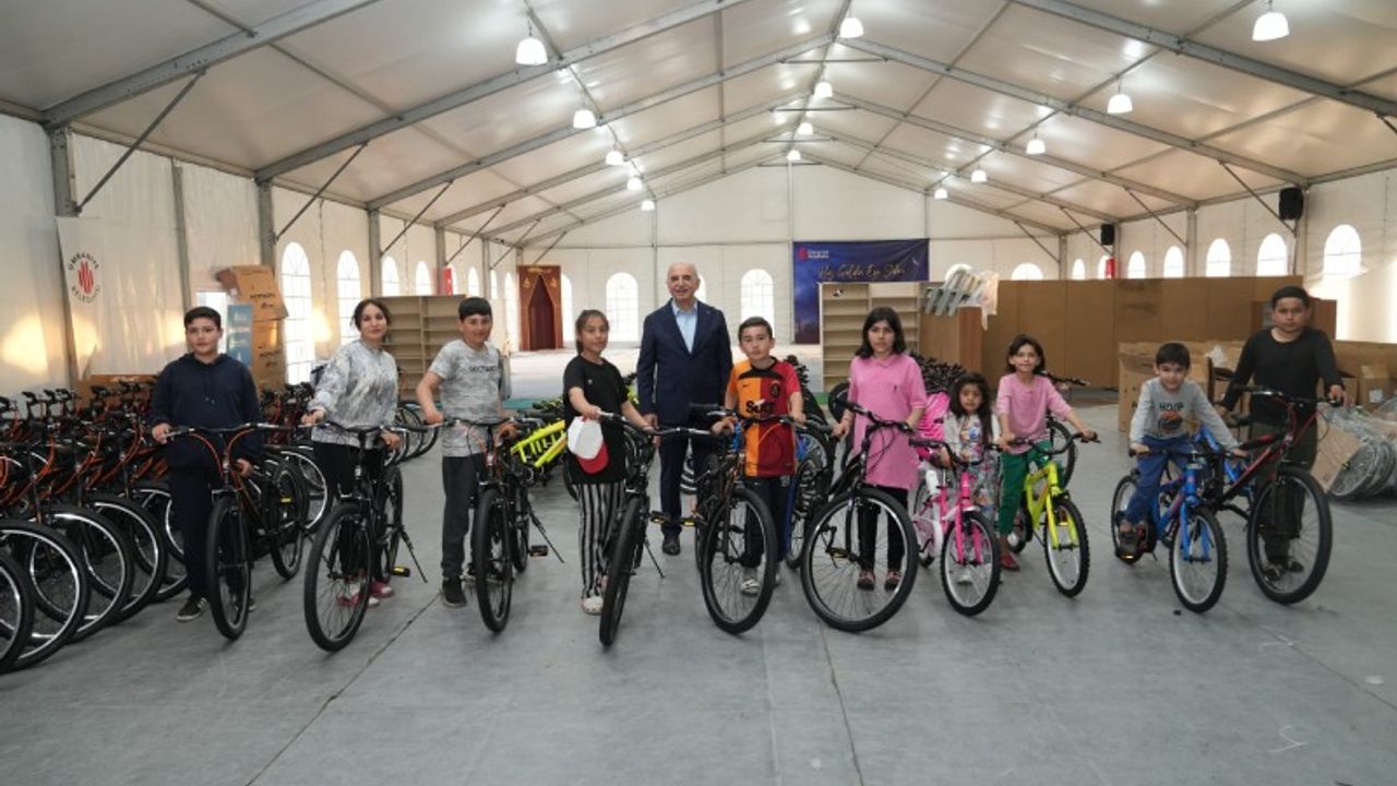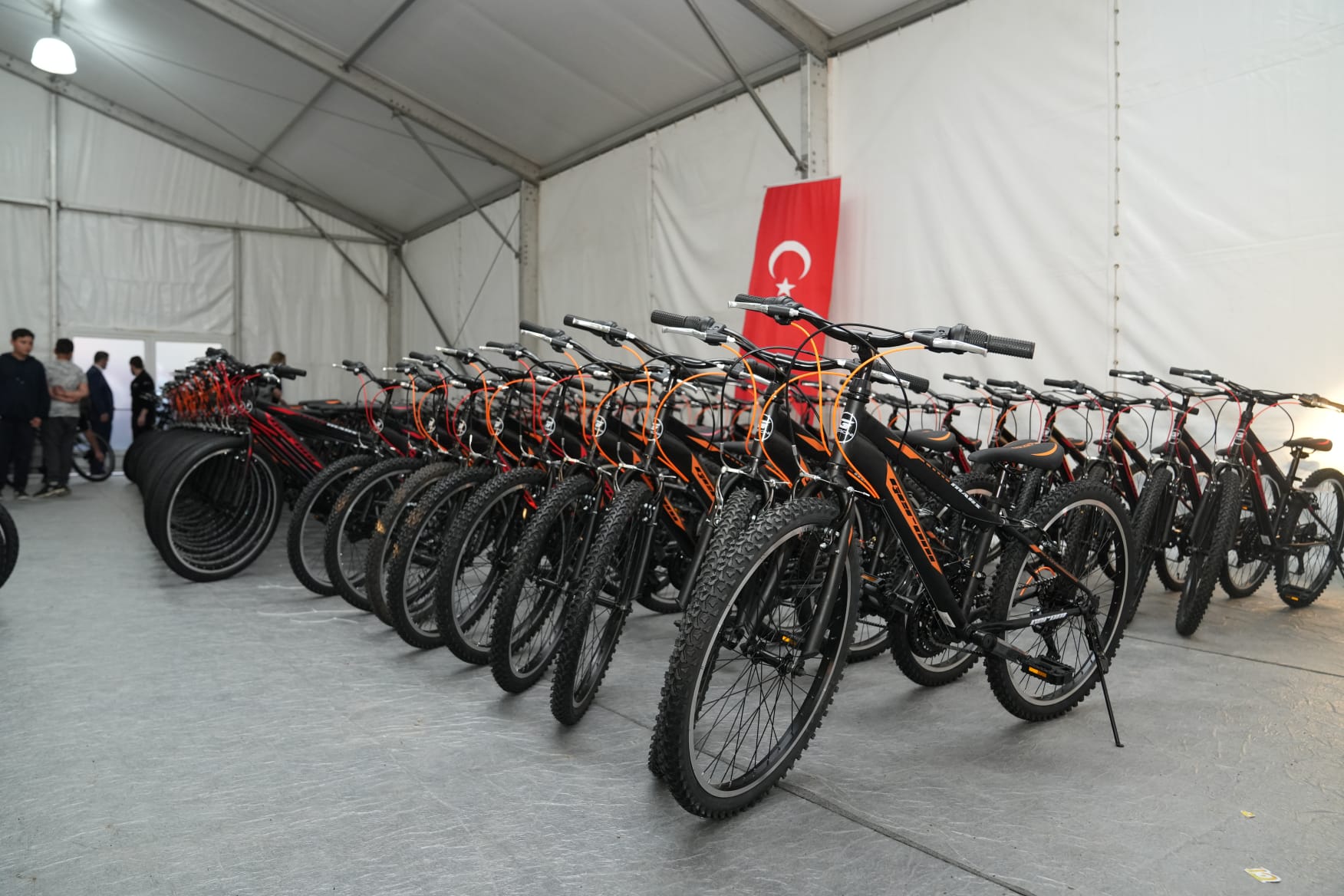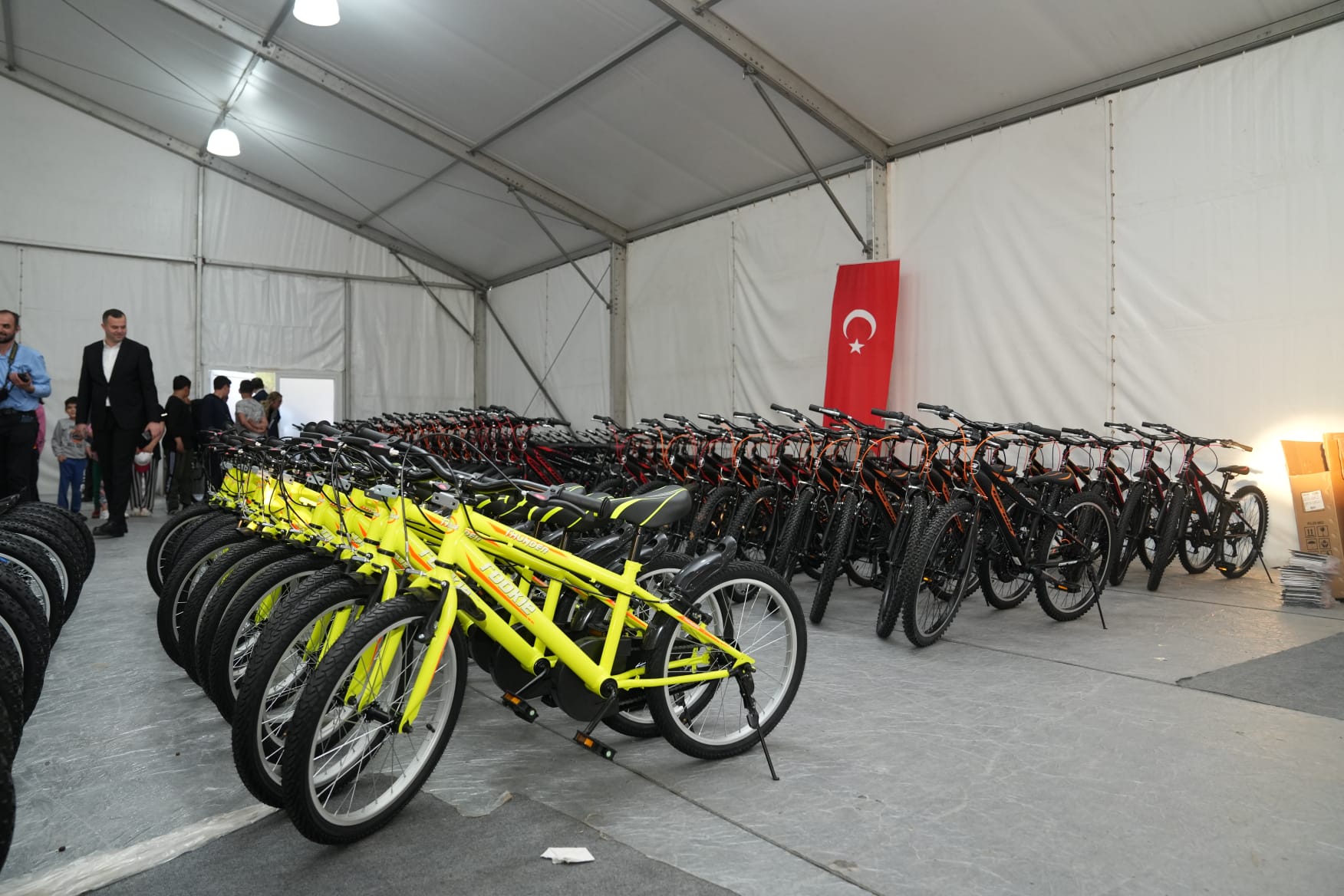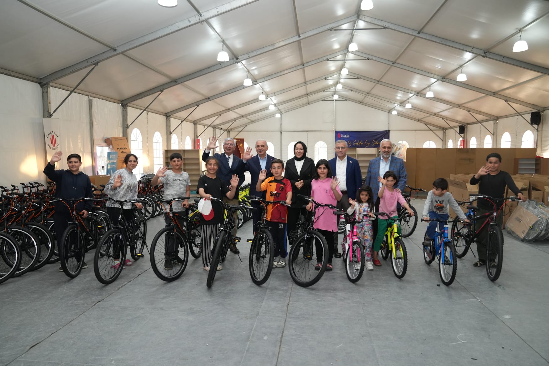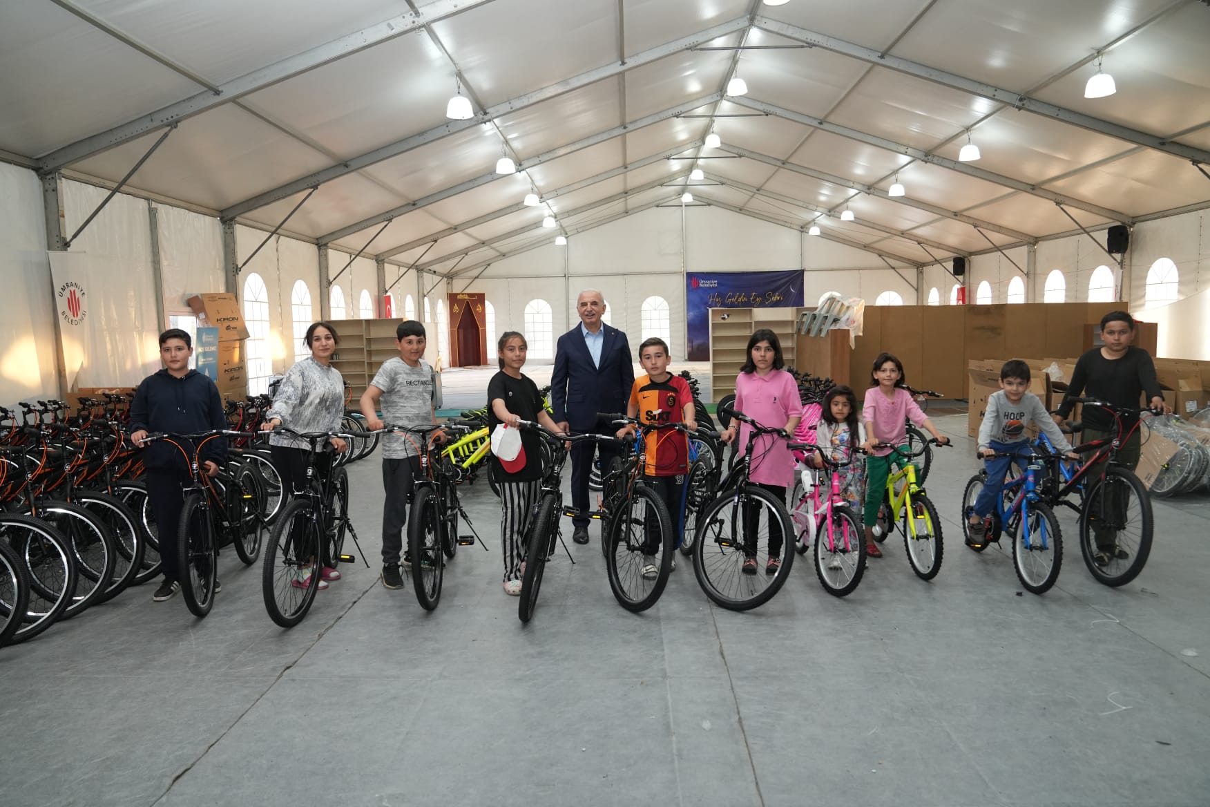 Hediyelerini teslim alan çocuklar bisikletlerle çifte bayram yaptıklarını belirterek, Belediye Başkanı İsmet Yıldırım'a teşekkür etti.
