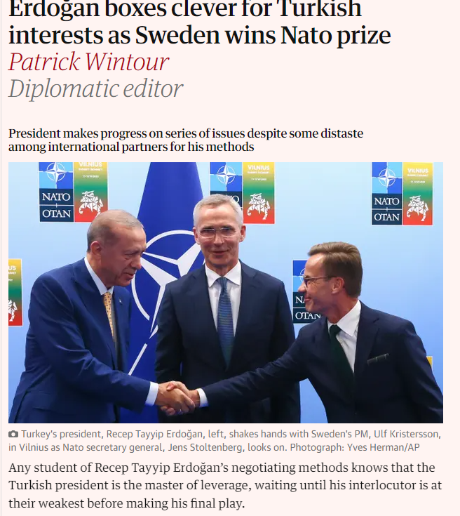 İsveç NATO ödülünü alırken Erdoğan kurnazca Türk çıkarlarını savundu.