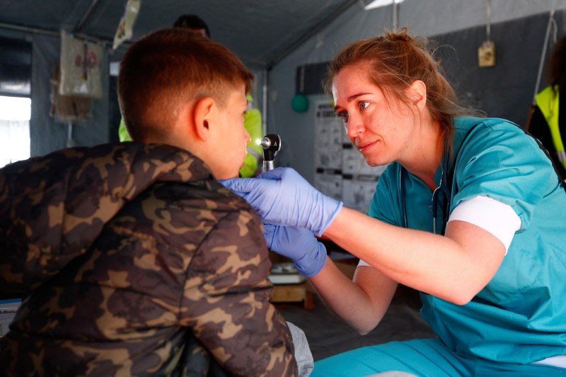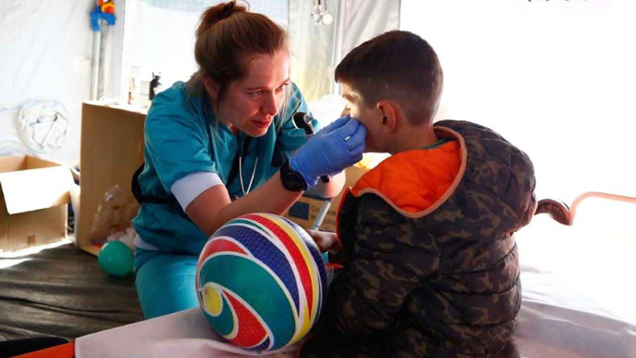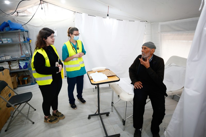 Kahramanmaraş merkezli depremlerden etkilenen Hatay'ın Kırıkhan ilçesinde Belçikalılar tarafından kurulan sahra hastanesinde yabancı sağlık çalışanları depremzedelerin tedavileri için görev yapıyor.
