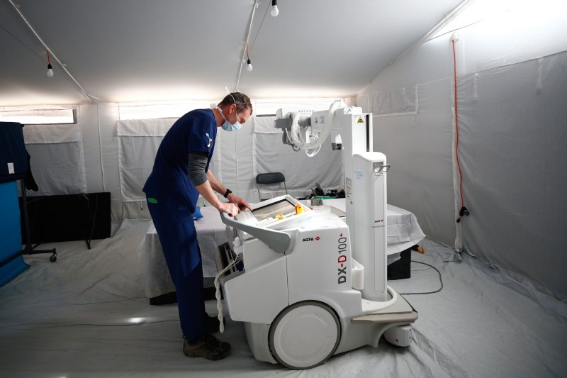 Acil bölümünden ameliyathanesine kadar birçok birimde depremzedelere hizmet sunan sahra hastanesi, günlük kapasitesinin üzerine çıkarak yaklaşık 200 hastanın tedavisine cevap vermeye çalışıyor.