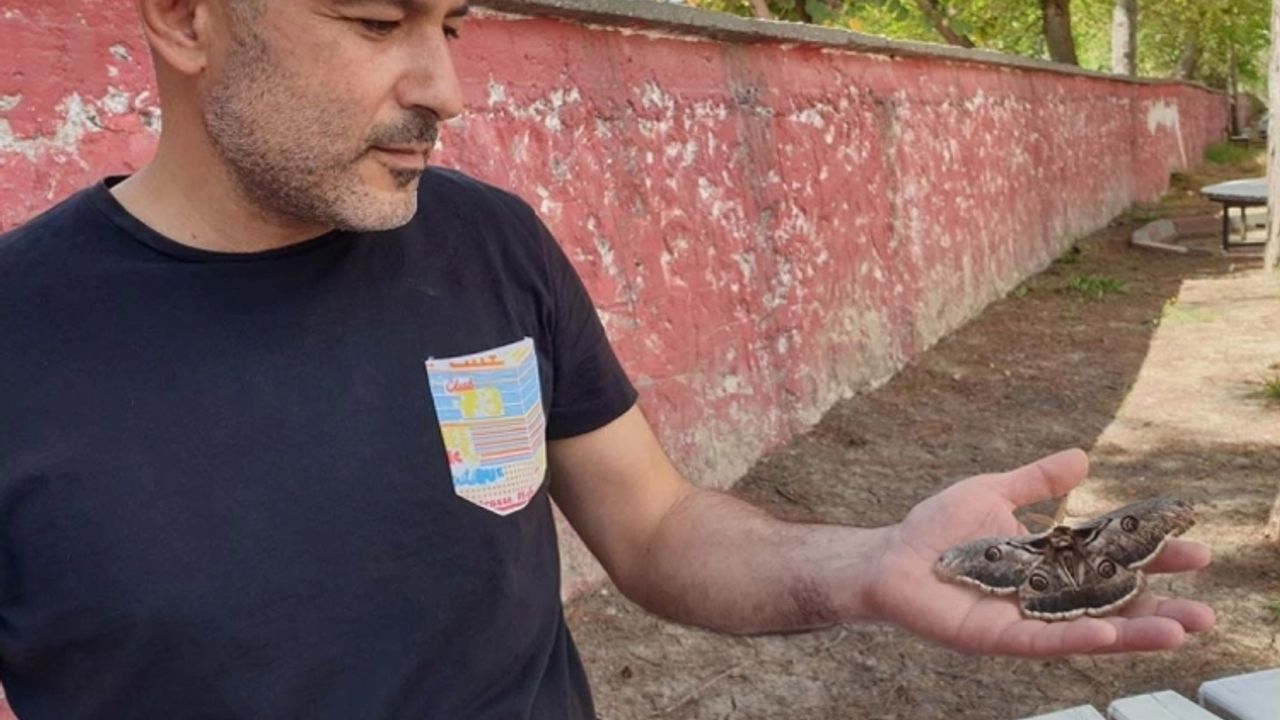 Osmaniye'nin Kadirli ilçesinde bulunan ve kanat açıklığı 16 santimetre olan tavus kelebeği, renk ve desenleriyle görenlerin ilgisini çekiyor.
