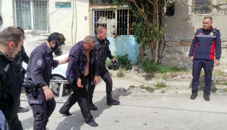 Polis, A.D.'nin bulunduğu yere biber gazı atarak eve girdi. A.D. ise içeri giren polislere kurusıkı tabanca, bıçak ve baltayla saldırdı.