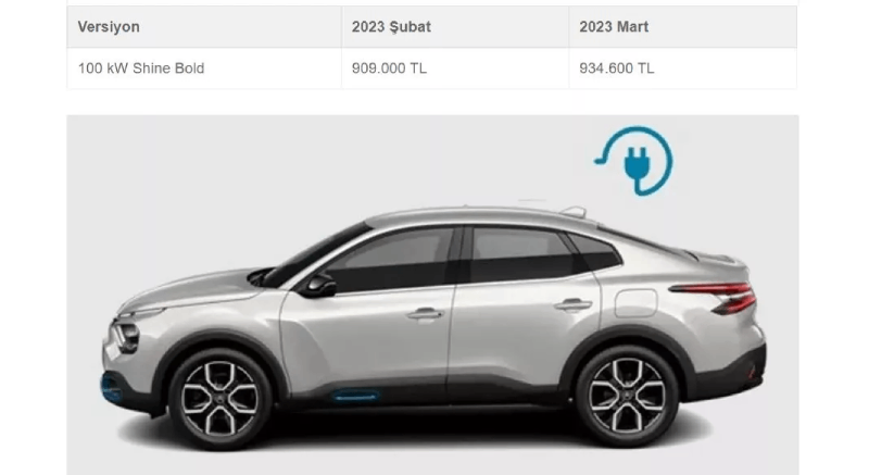 Citroen e-C4 fiyat listesi