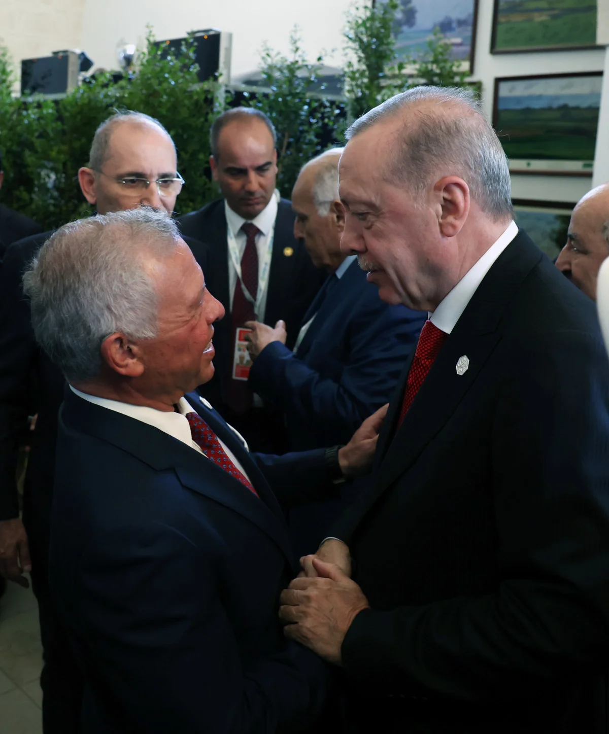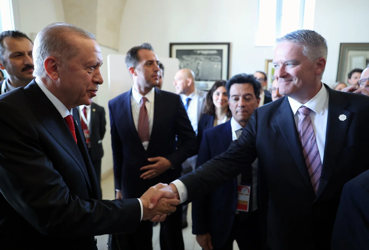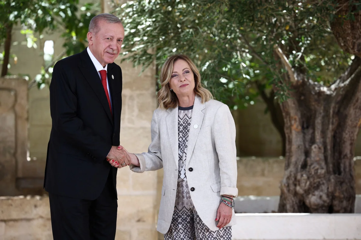 Cumhurbaşkanı Erdoğan burada, zirveye ev sahipliği yapan İtalya Başbakanı Meloni tarafından karşılandı.