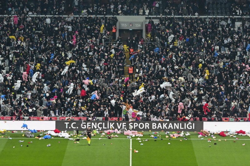 Siyah-beyazlıların Vodafone Park'ta Fraport TAV Antalyaspor ile oynadığı karşılaşmada tribünlerden binlerce oyuncak sahaya atıldı.