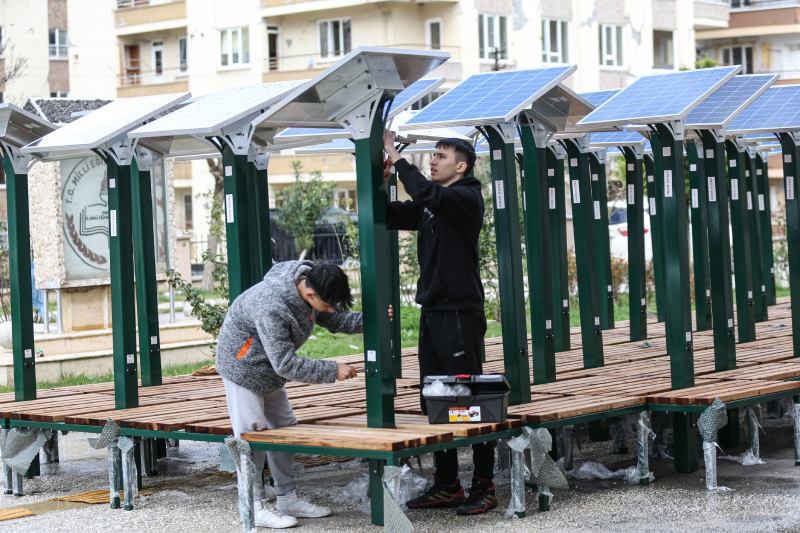 Kahramanmaraş merkezli 6 Şubat'taki Pazarcık ve Elbistan ilçeleri merkezli 7,7 ve 7,6 büyüklüğündeki depremlerin ardından afet bölgelerindeki enerji ihtiyacı için harekete geçen lisenin üretimini tamamladığı banklar, merkez Antakya ilçesi Ürgen Paşa Mahallesi'ndeki İl Milli Eğitim Müdürlüğü binasına gönderildi.Kente gelen öğretmen ve öğrenciler de güneş panelli enerji banklarının montaj işlemine başladı. Kurulumu tamamlanan banklar, Valilik koordinasyonunda çadır kentlere ulaştırılacak.Telefon, tablet ve taşınabilir bataryalar gibi elektronik aletler için şarj imkanı sağlayacak enerji bankları, geceleri de ışıklandırma desteği sunacak.