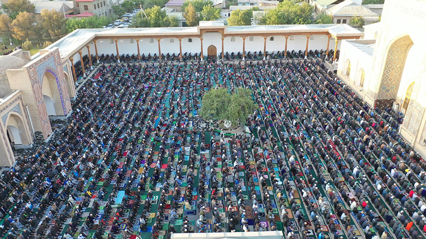 Özbekistan'ın başkenti Taşkent'te binlerce kişi bayram namazı için camilere akın etti. Müslümanlar, camilerde yer kalmayınca cami bahçelerini ve sokakları doldurdu. Camilerin bulunduğu cadde ve sokaklar trafiğe kapatıldı."Osman Mushafı" olarak bilinen, üzerine Hazreti Osman'ın kanının aktığı ceylan derisine yazılan Kur'an-ı Kerim'in muhafaza edildiği, Taşkent'teki Hazret İmam Külliyesi'ndeki bayram namazını, Özbekistan Müslümanları Dini İdaresi Başkanı Nuriddin Haliknazarov kıldırdı.