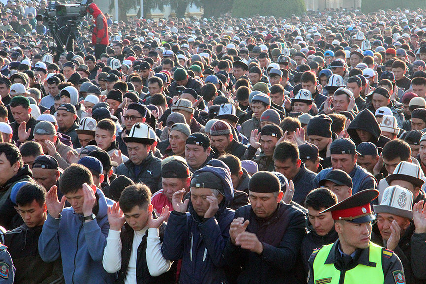 Kırgızistan'ın başkenti Bişkek'in Pervomay İlçe Kaymakamlığı ve İl Emniyet Müdürlüğü, bayram namazının Cumhurbaşkanlığı ve hükümet binasının önündeki meydanda kılınması için gerekli tedbirleri aldı.Şafak vaktinde, eski meydana çıkan Mihail Frunze, Kasım Tınıstanov, Çui ve İvan Panfilov caddeleri trafiğe kapatıldı.Vatandaşlar, bayram namazını kılmak için yerel saatle 05.00'te toplanmaya başladı.
