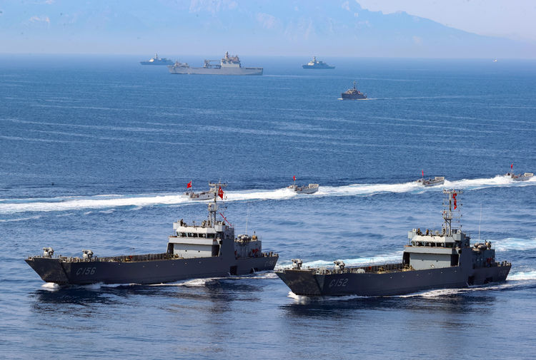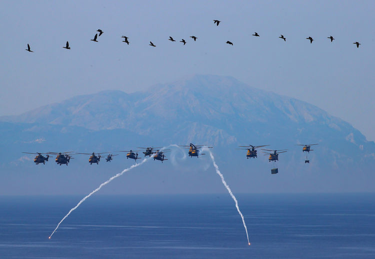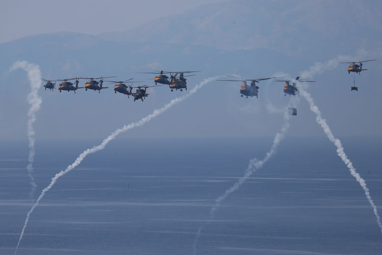 Tatbikatta bir düşman denizaltı bulunduğu senaryosu üzerine tam yeri belirlenmesi için 3 Sikorsky helikopteri, deniz yüzeyine yaklaşarak sonar cihazı daldırdı. Deniz karakol uçağı da denizaltıyı etkisiz hale getirmek için torpido attı.