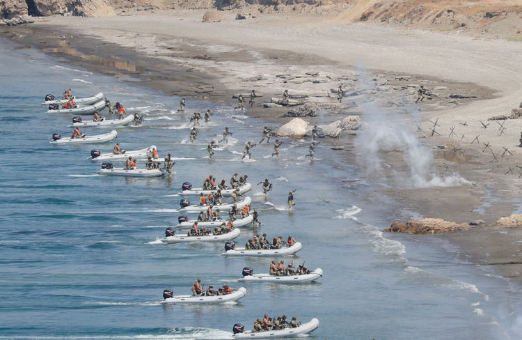 Tatbikatta kıyıya yanaşan çıkarma gemilerinin kapak atması sırasında Batman'daki üslerinden havalanan Akıncı TİHA'lar da tam isabetli atışlarıyla harekata destek oldu.