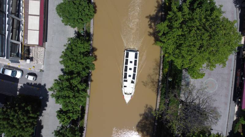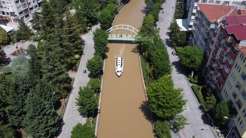 Rengi değişen çayda turistik amaçlı Esbot ve gondollarla yapılan turlar ise değişik görüntüler ortaya çıkardı.