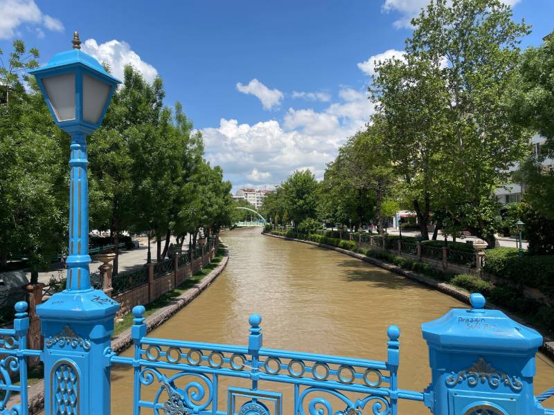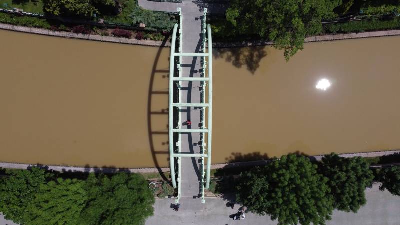 Kahverengine dönüşen çay ve üzerindeki yer alan rengarenk yaya köprüleri ise dronla görüntülendi.