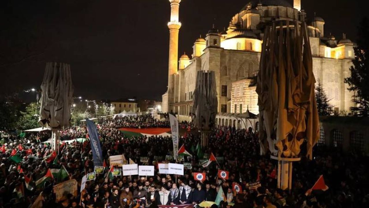 İşgalci İsrail'in Mescid-i Aksa'ya düzenlediği alçakça baskın Fatih Camii avlusunda "Kudüs İçin Kıyama" sloganıyla protesto edildi.