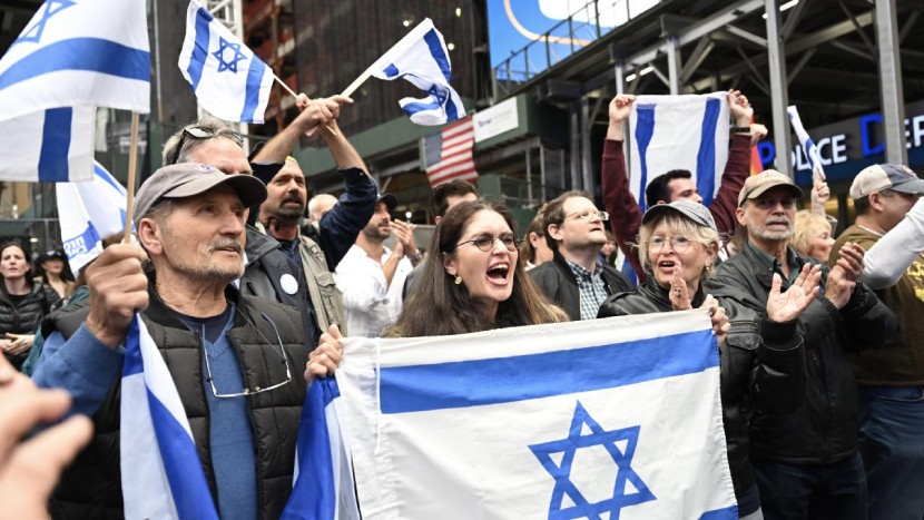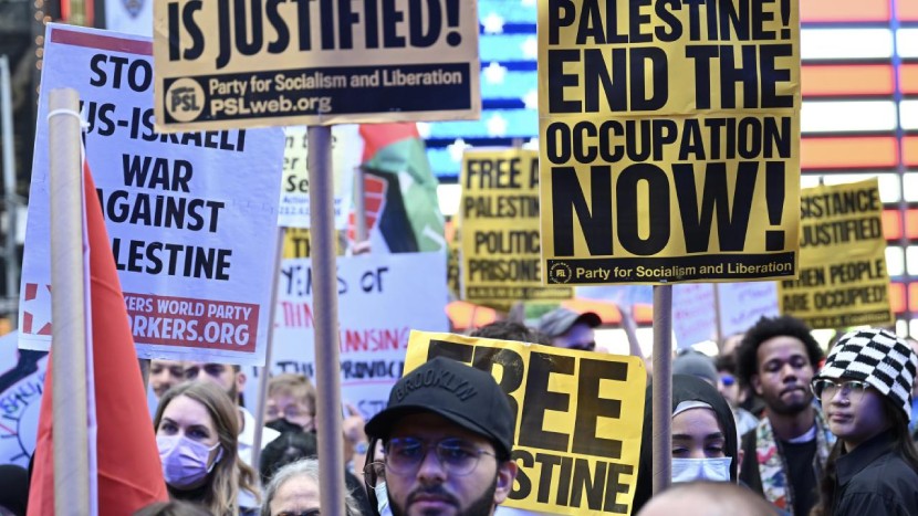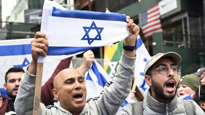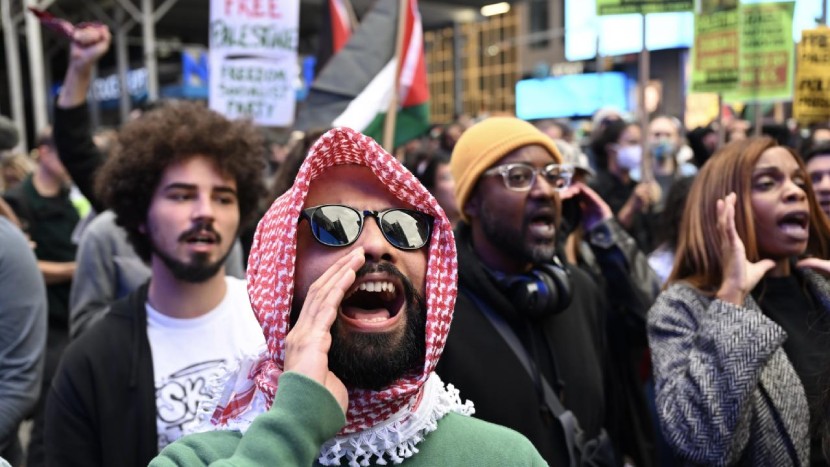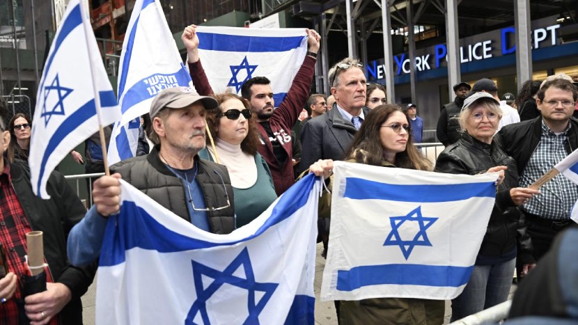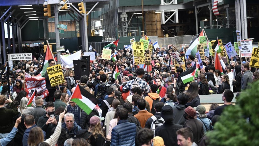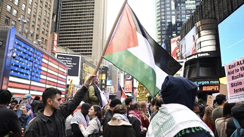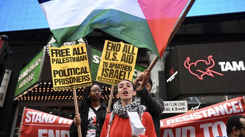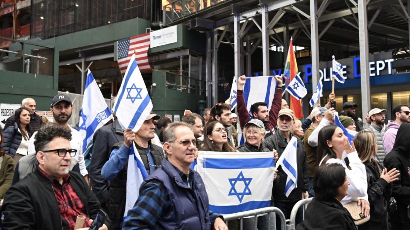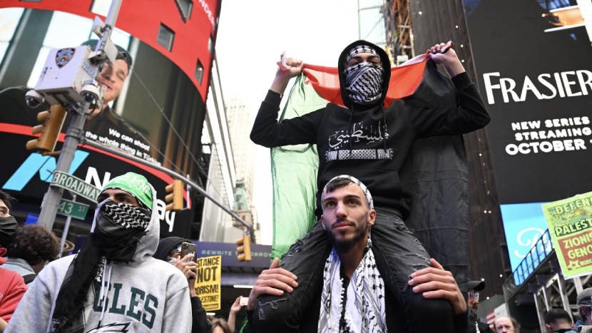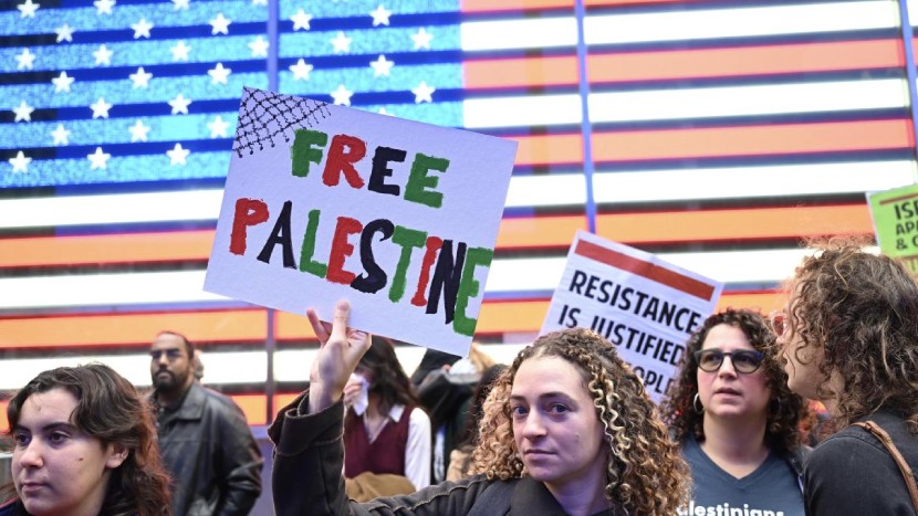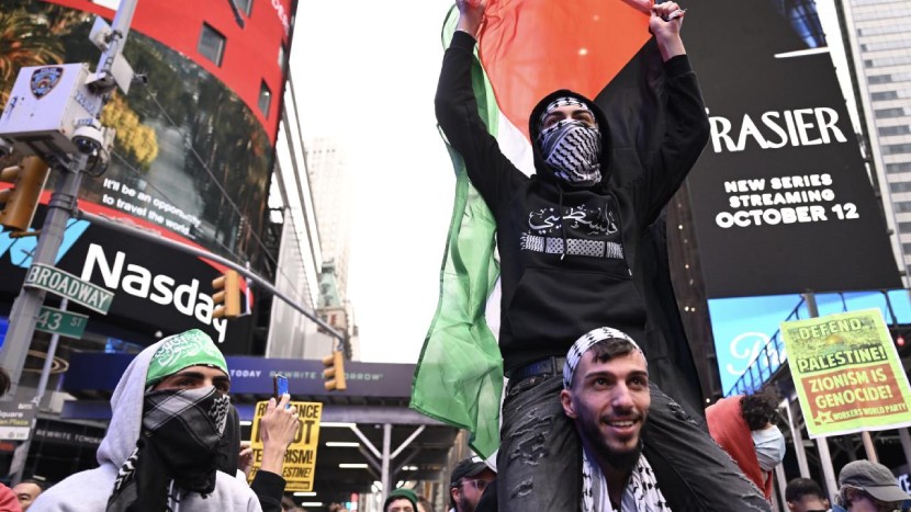 Filistin direnişçileri ve İşgalci İsrail yanlısı vatandaşlar aynı anda Times Meydanı'nda eylem yaptı.