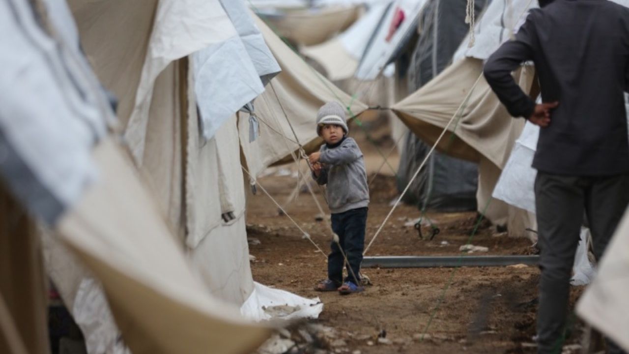 Saldırılar nedeniyle evlerini terk ederek Gazze'nin Han Yunus kentine sığınan Filistinliler, bir yandan çocuklarına su ve gıda malzemelerini temin etmeye çalışırken diğer yandan kaldıkları derme çatma çadırlarda soğuk hava şartlarıyla mücadele ediyor.