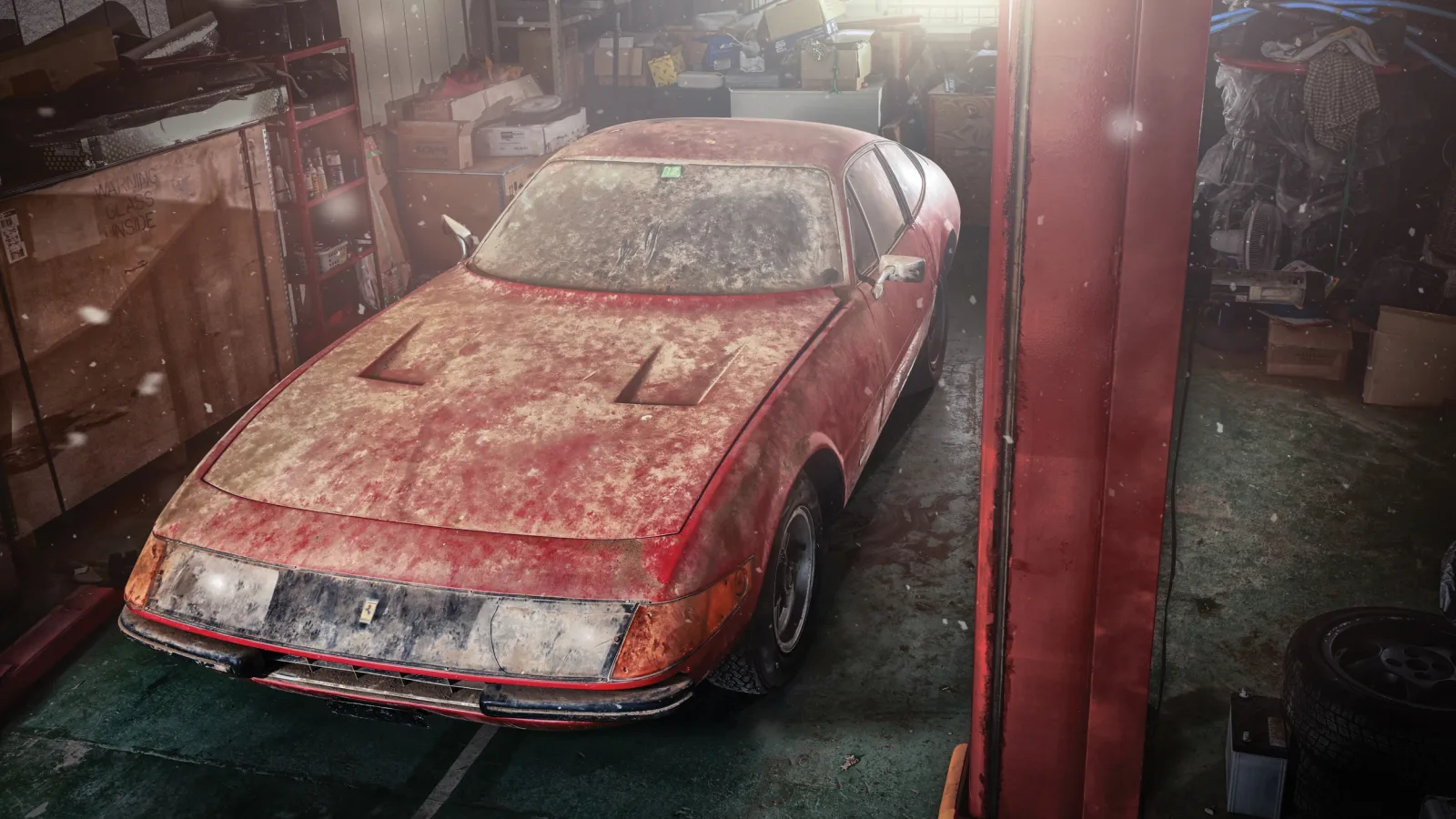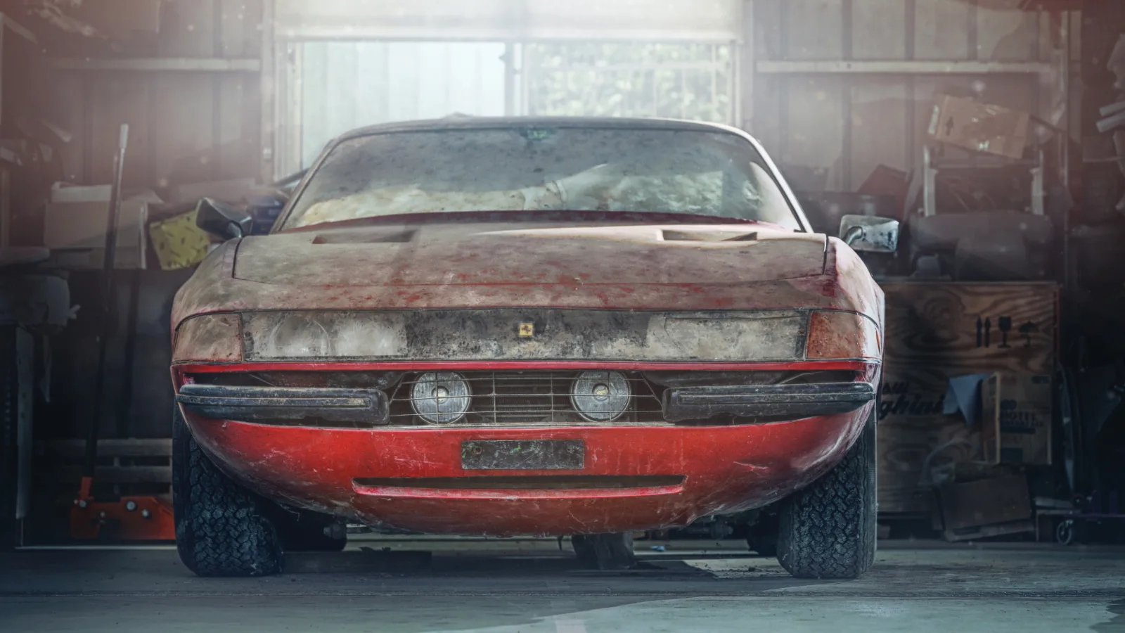 Fotoğrafta gördüğünüz 1969 model Ferrari 365 GTB/4 Daytona, Japonya'da bir garajda bulundu. Bir kaç kez el değiştiren otomobilin son durağı, Makoto Takai'nin garajı oldu.