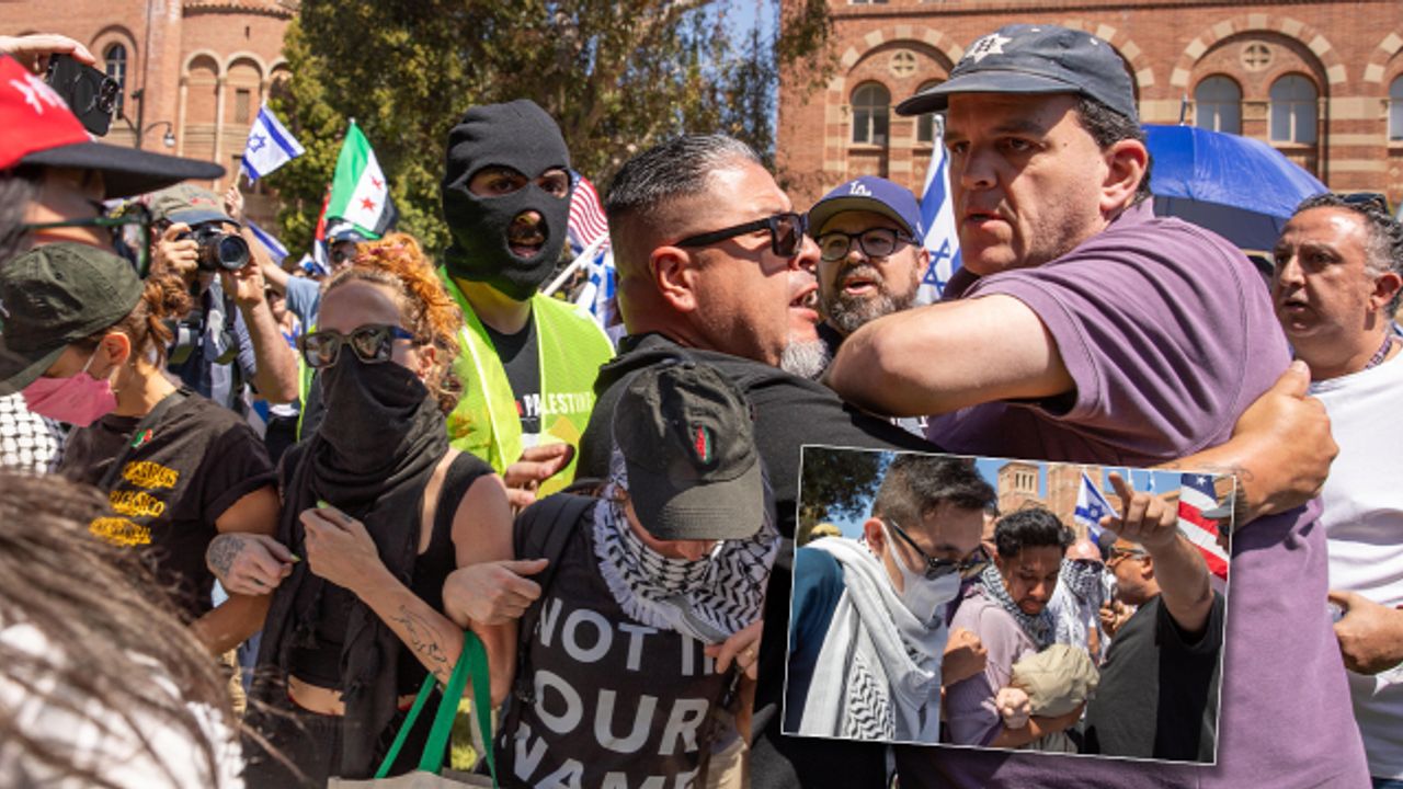 ABD'nin Los Angeles kentinde yer alan California Üniversitesi (UCLA) öğrencilerinin, işgalci İsrail'in Gazze'deki saldırılarına karşı çıkmak ve Filistinlilere destek gösterisinde bulunmak amacıyla kampüste kurduğu Gazze Dayanışma Kampı, üçüncü gününde devam ederken, işgalci İsrail destekçileri ile Filistin destekçileri arasında arbede çıktı.