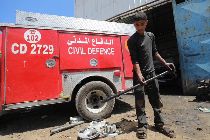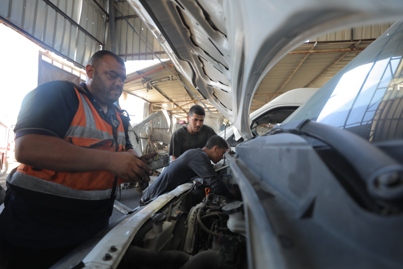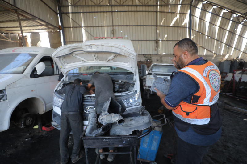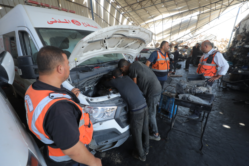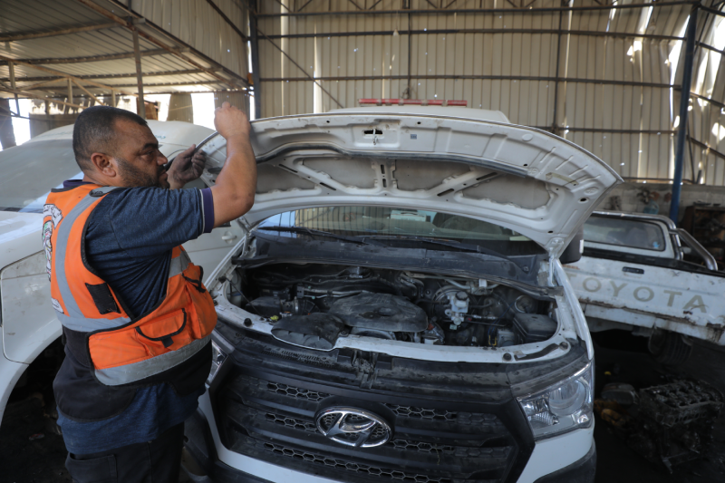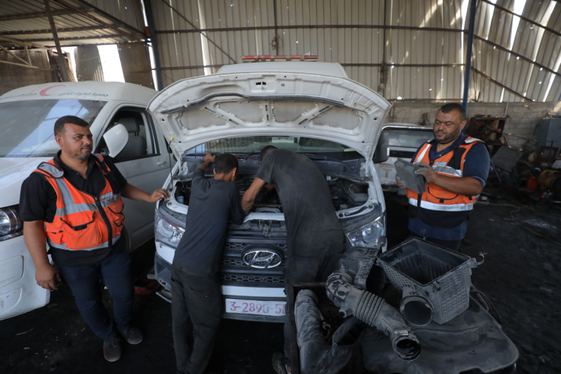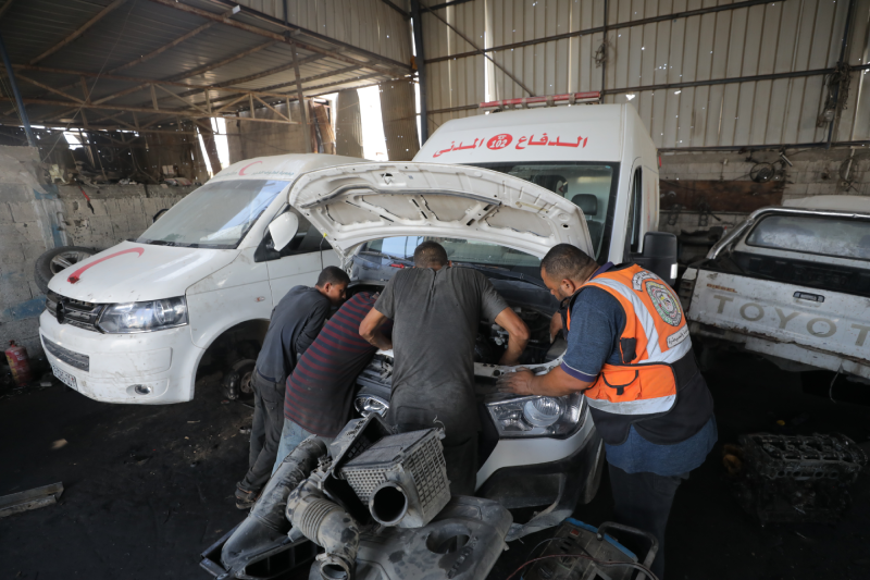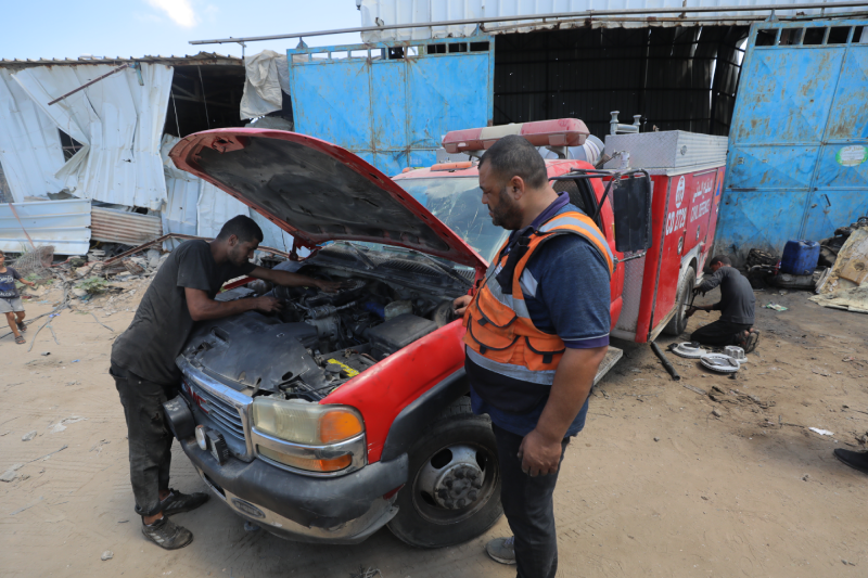Gazzeli araç tamircileri, ambulans ve itfaiye araçlarını kısıtlı imkanlarla tamir etmeye çalışıyor.