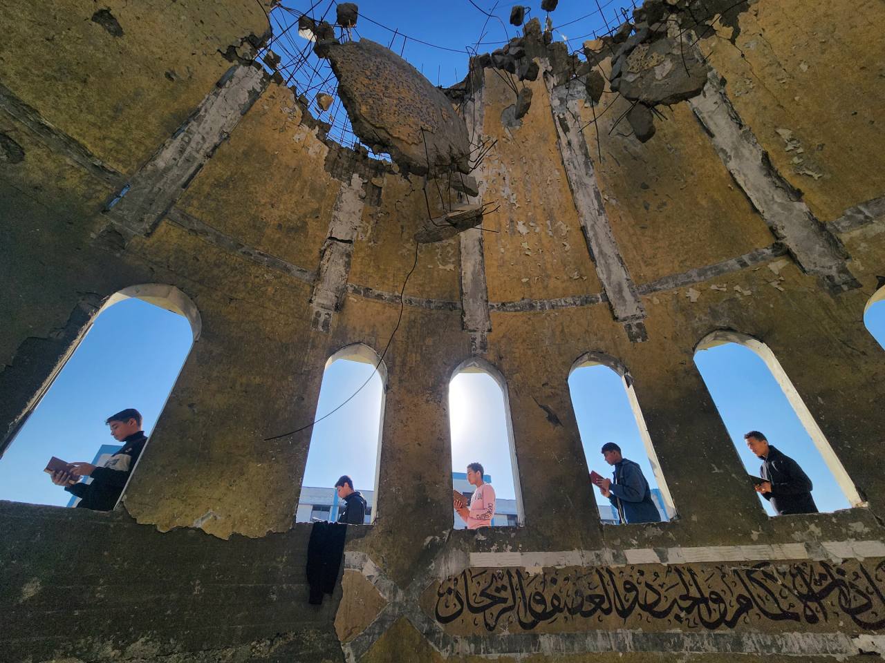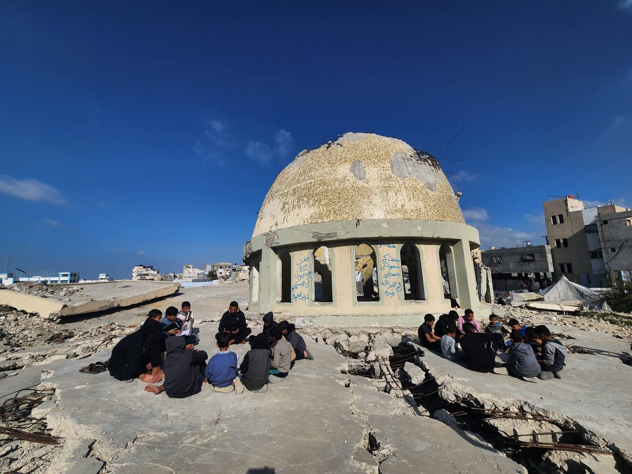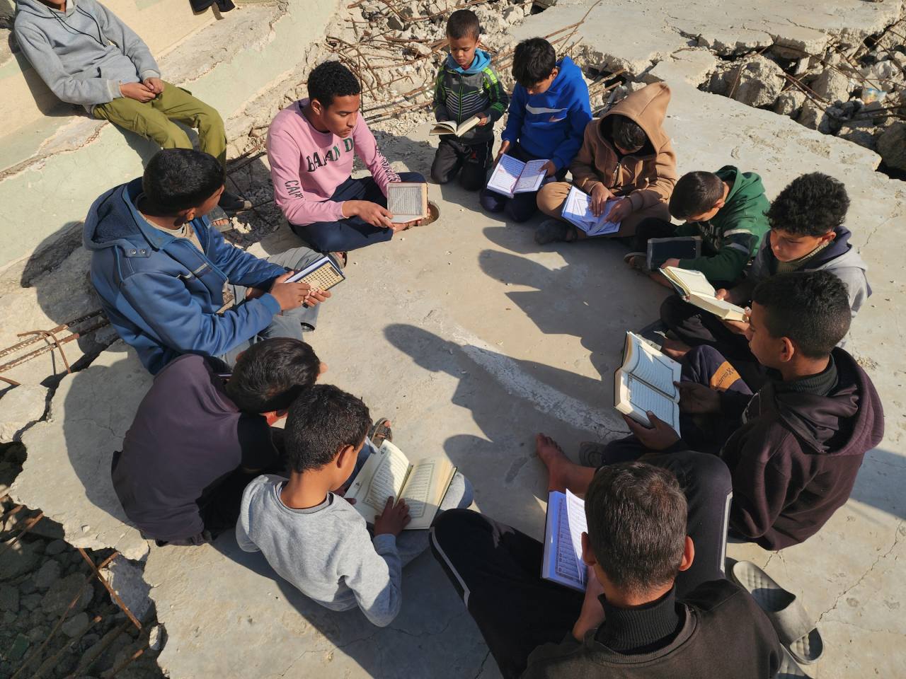 Gazze Şeridi'nin Han Yunus kentinde yaşayan Filistinli çocuklar, ramazan ayında iftar saatini beklerken günlerini, İsrail saldırısında ağır yıkıma uğrayan El Habib Muhammed Camii enkazında Kuran-ı Kerim okuyarak geçiriyor.