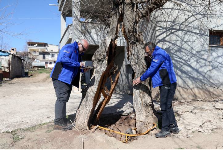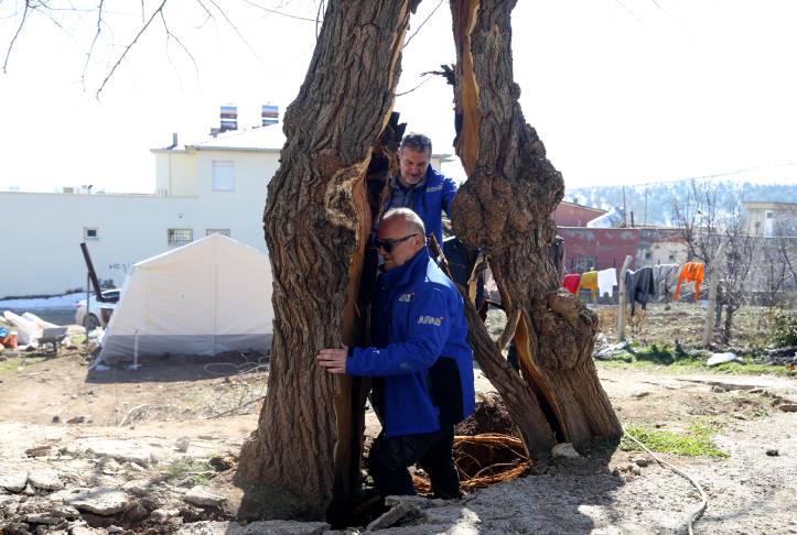 Fayın yüzey kırıklarını inceleyerek üç boyutlu modelleme çıkarmak üzere bölgede bulunan Prof. Dr. Hasan Sözbilir de mahallede ağacı inceledi. Sözbilir, depremin büyüklüğünün 7,7 olsa da şiddetinin 11 seviyesine çıktığını, deprem sırasında zemin şekil değiştirirken fayın geçtiği yerlerde atımın oluştuğunu, bu atım miktarının da depremin büyüklüğünün göstergesi olduğunu kaydetti.