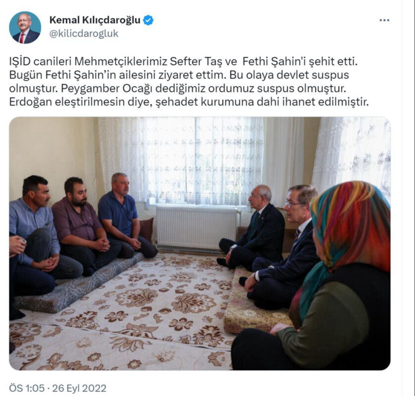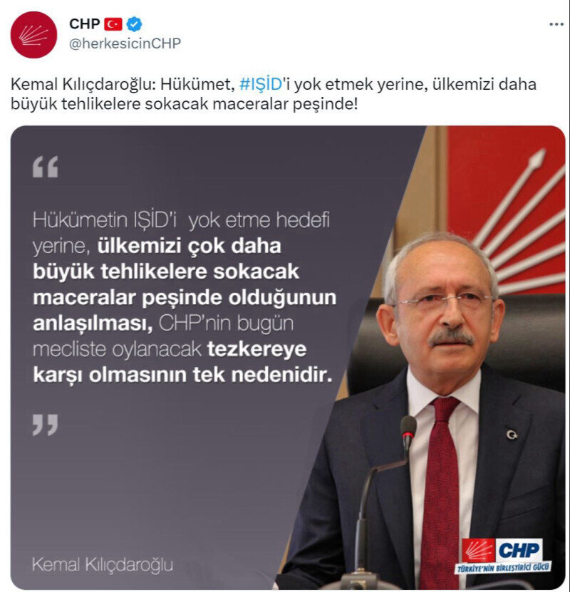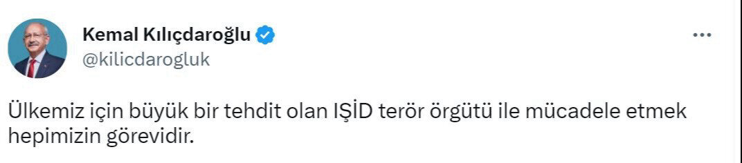 Kılıçdaroğlu, "Biz Cumhuriyet Halk Partisi olarak terör örgütlerinin isimlerini dillendirmemeye özen gösteririz. Ben terör örgütünün reklamını yapmam." dedi. Terör örgütlerinin reklamını yapmamak için isimlerini kullanmadığını söyleyen Kılıçdaroğlu'nun sosyal medya hesabından terör örgütü DEAŞ'a yönelik yaptığı paylaşımları ortaya çıktı.