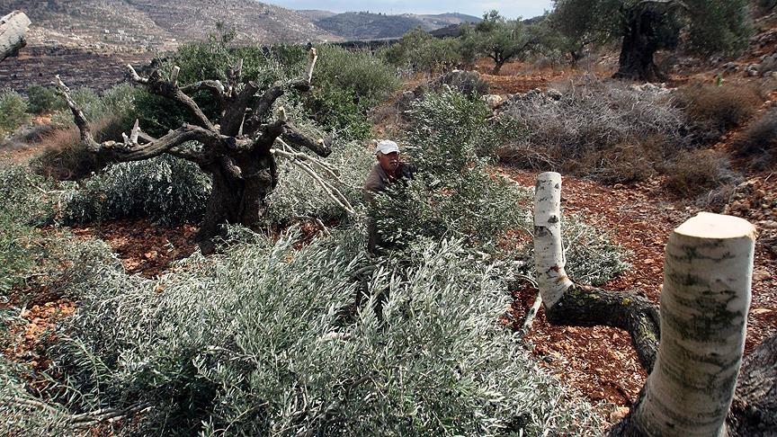 İsrailli yerleşimci milisler, işgal altındaki Batı Şeria'daki Filistin köyü Majdal Bani Fadel civarındaki yaklaşık 50 zeytin fidanına zarar verdi.