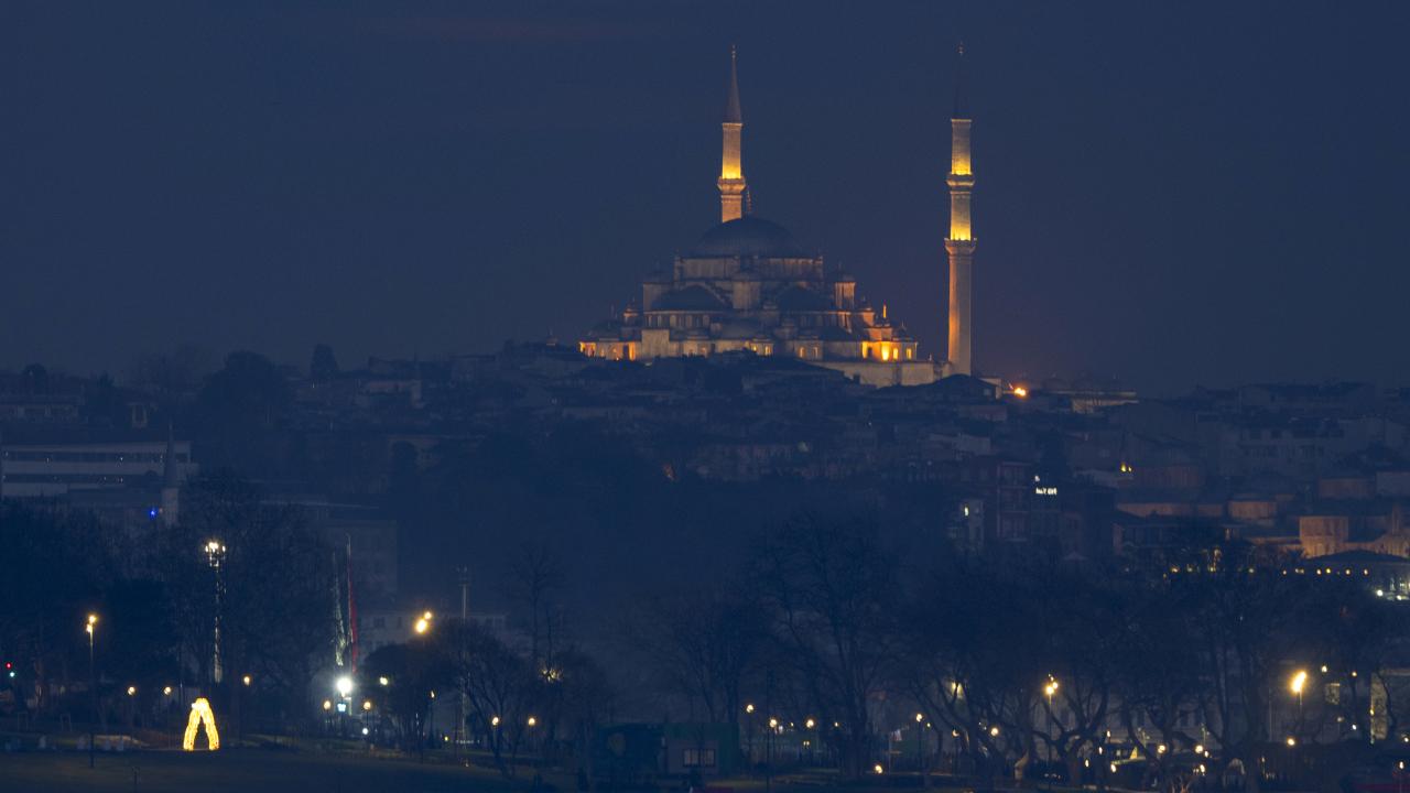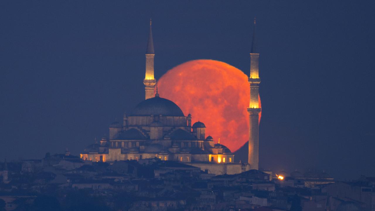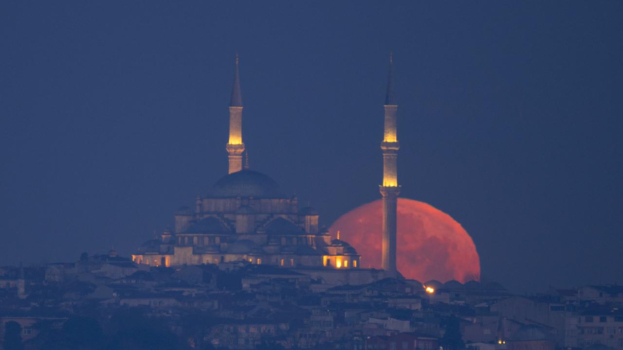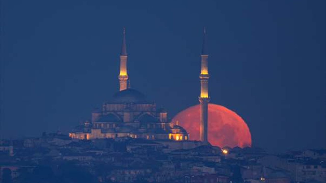 İstanbul'da dolunay, Fatih Camisi ile birlikte kartpostallık görüntüler oluşturdu.