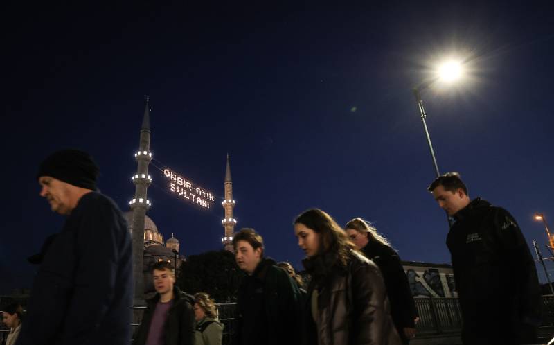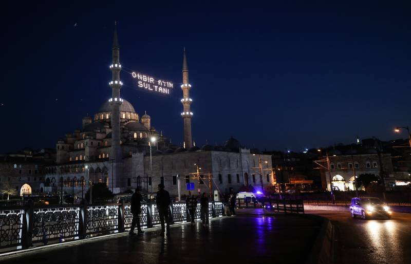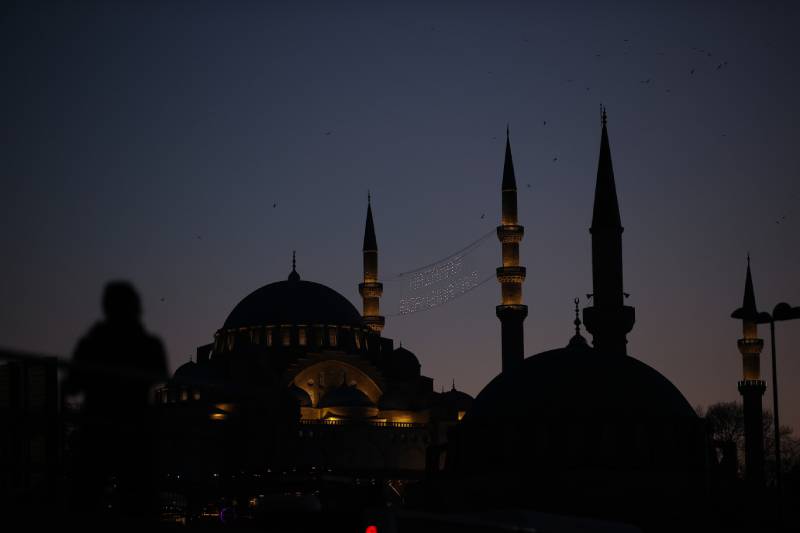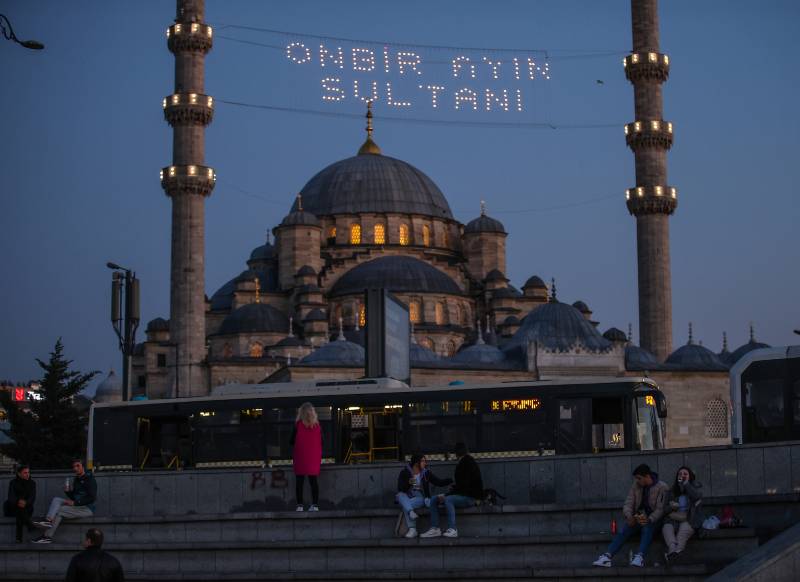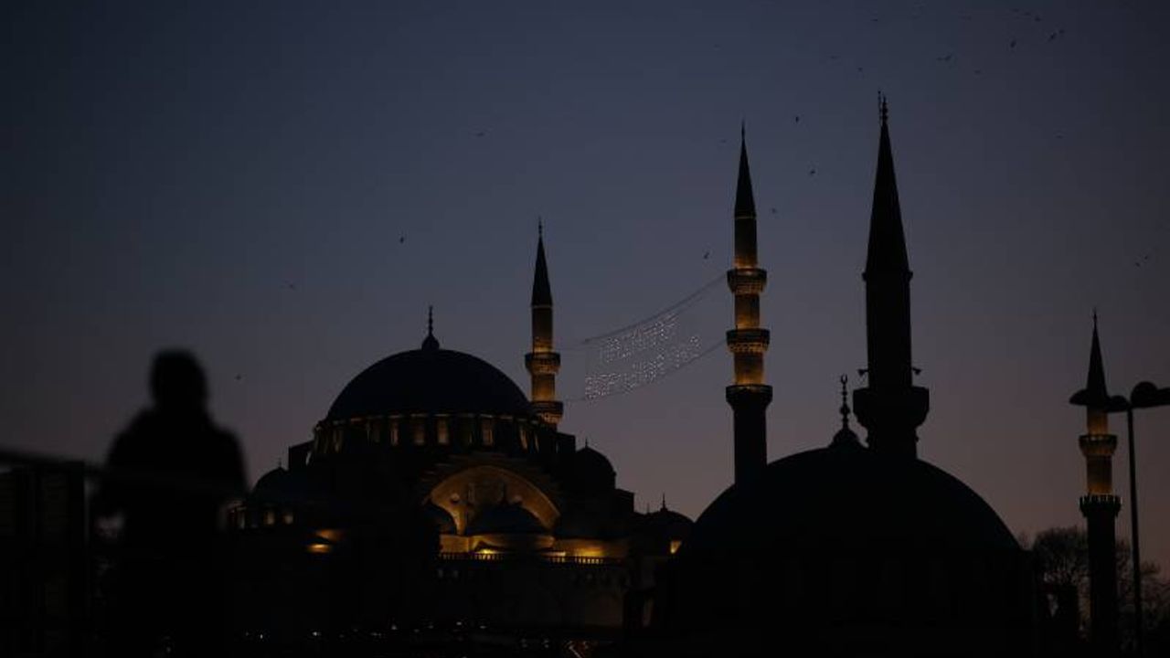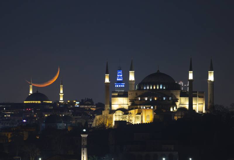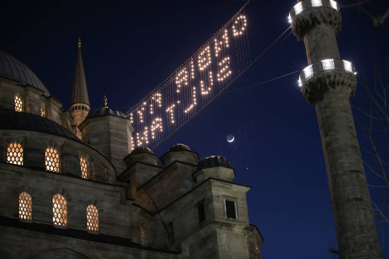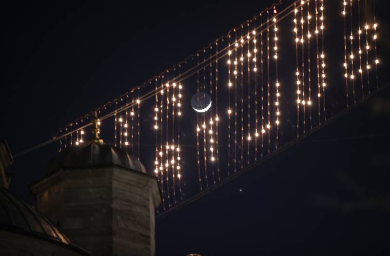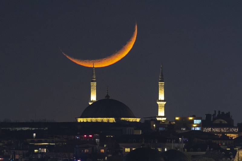 İstanbul'da hilal, Yeni Camii ile birlikte güzel görüntü oluşturdu.