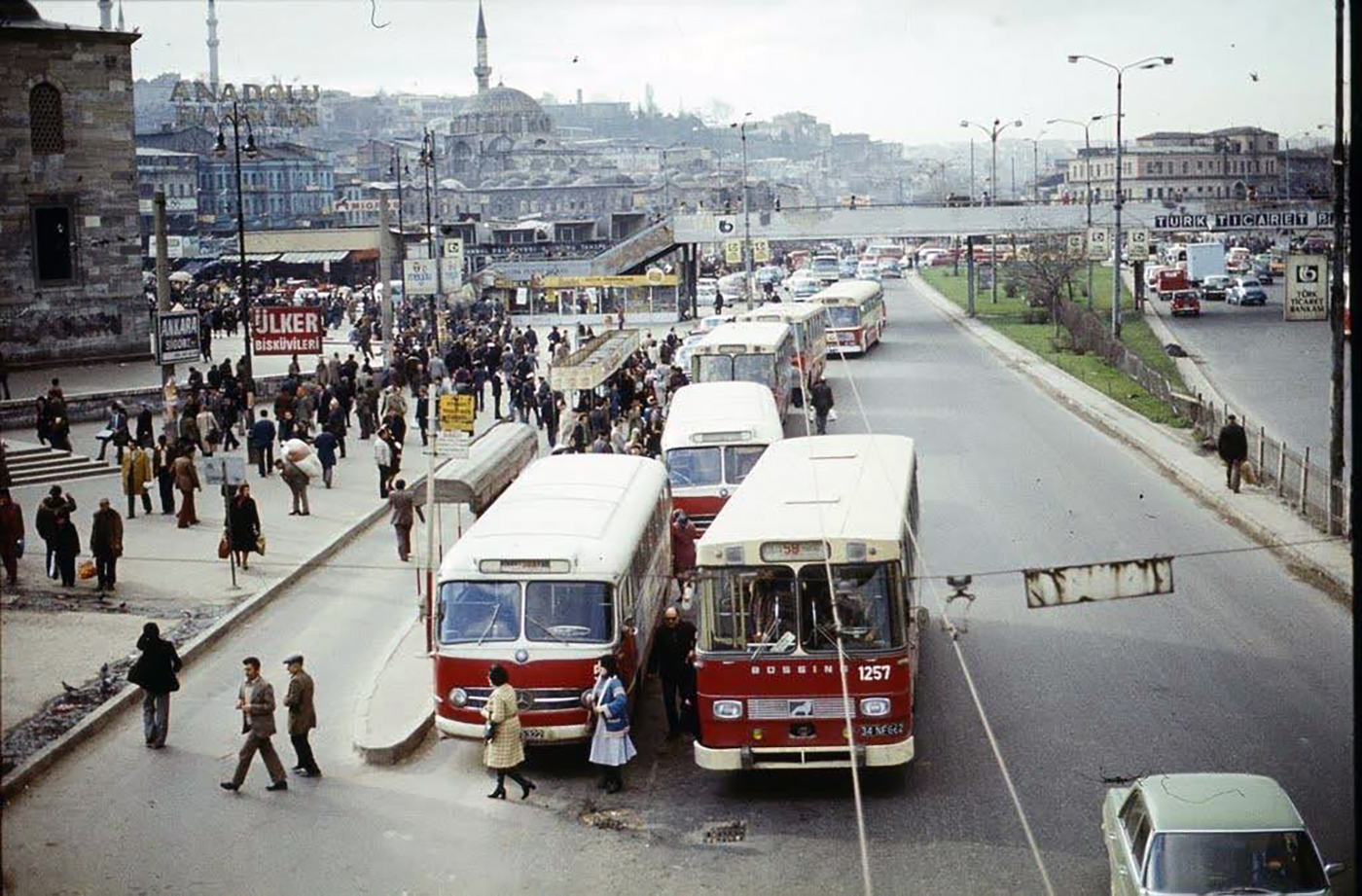Eminönü peronlarda bekleyen otobüsler, 1975