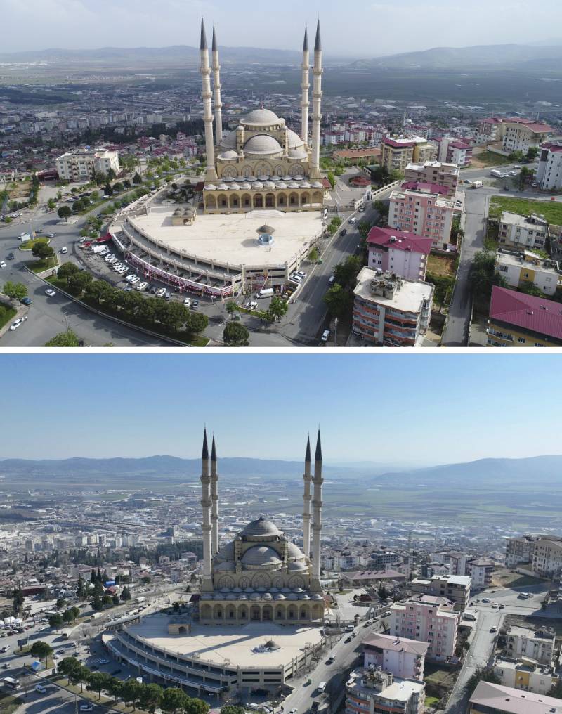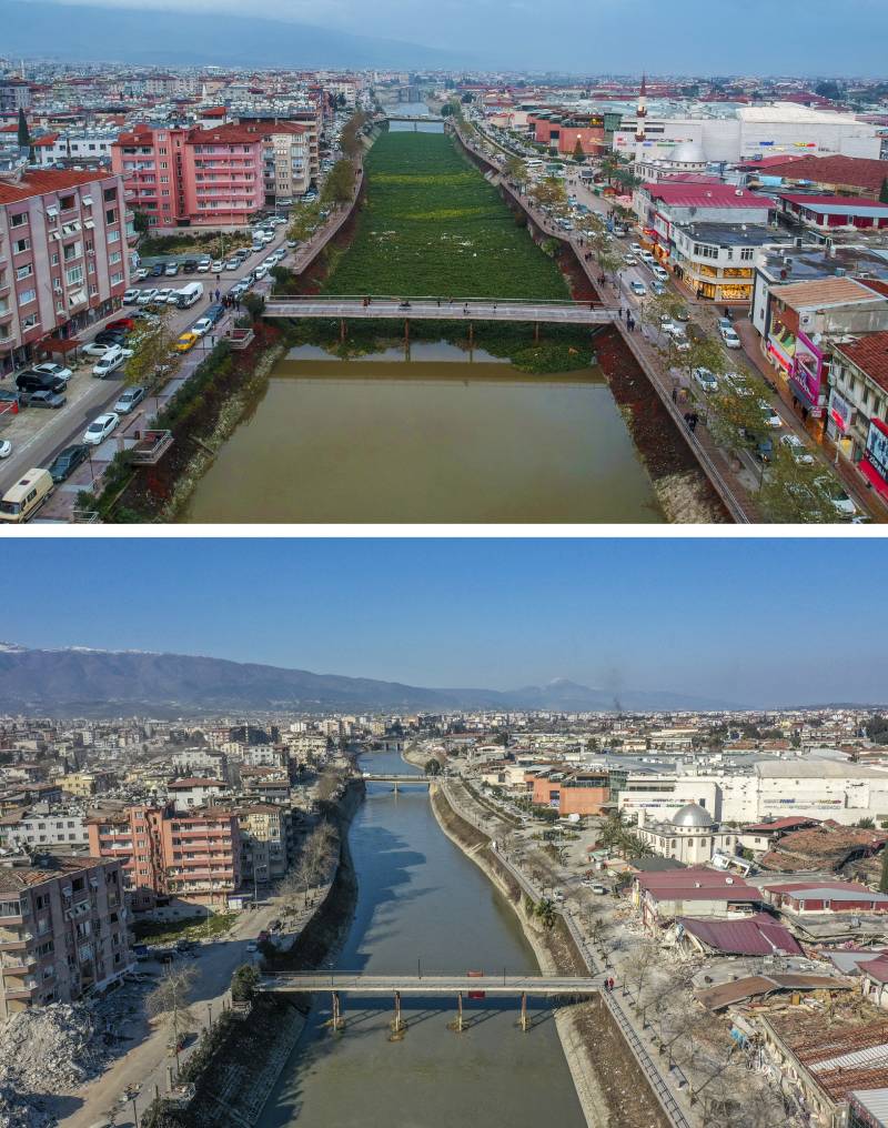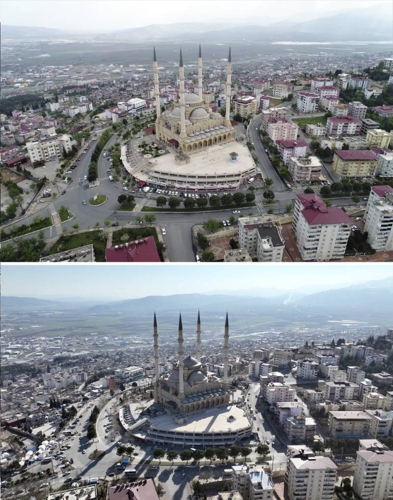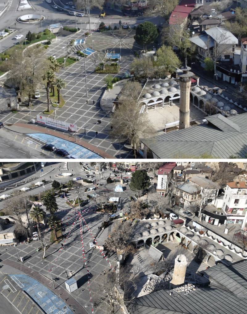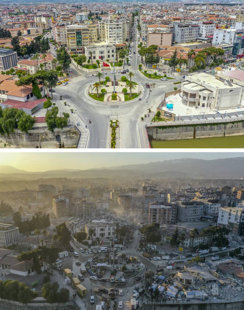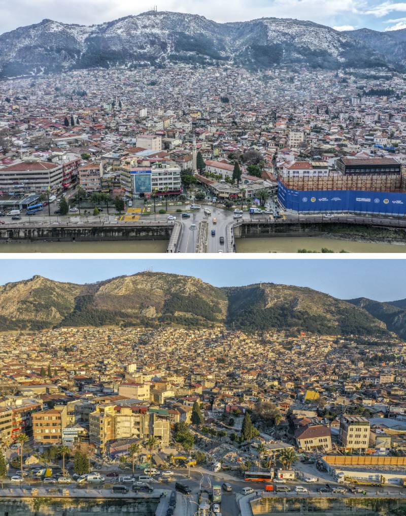 Asrın felaketi olarak nitelenen depremlerden etkilenen Kahramanmaraş kent merkezinin önceki yıllarda çekilen fotoğrafları ile deprem sonrasında aynı açılardan dronla çekilen fotoğraflar, yıkımın boyutunu gösteriyor.