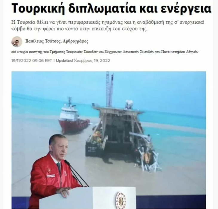 Yunan basınında geniş yer bulduTürkiye ile Akdeniz'de enerji sahaları konusunda ters düşen ve provokasyonlara imza atan komşu Yunanistan'da da Türk gazı geniş yer buldu.Yunanistan'ın en büyük gazetelerinden biri olan Kathimerini gazetesi, Türkiye'nin büyük projelerine dikkat çekti.Beşinci nesil savaş uçağı, TCG Anadolu ve Togg'dan sonra Karadeniz'deki doğalgazın karaya çıkarıldığını yazdı.